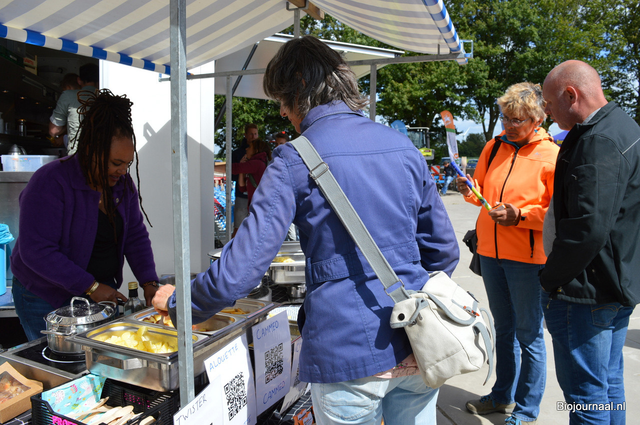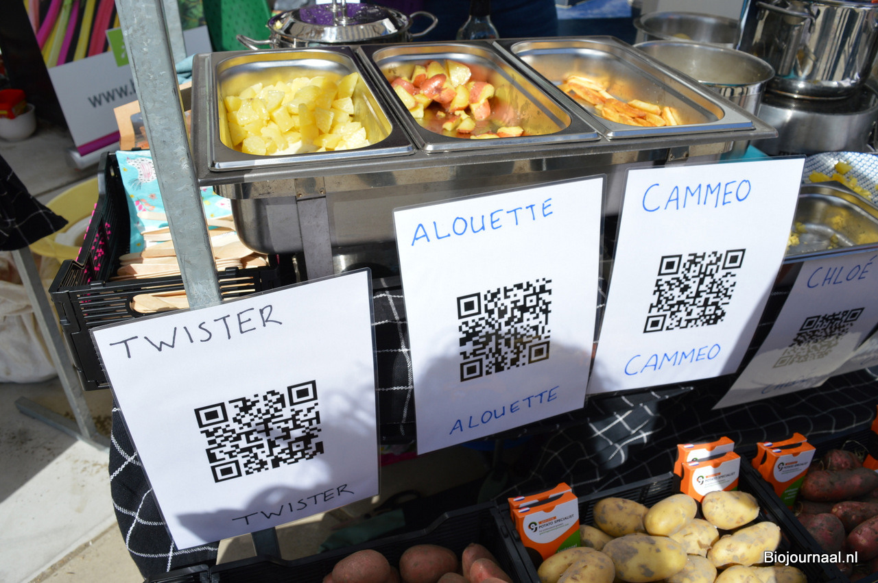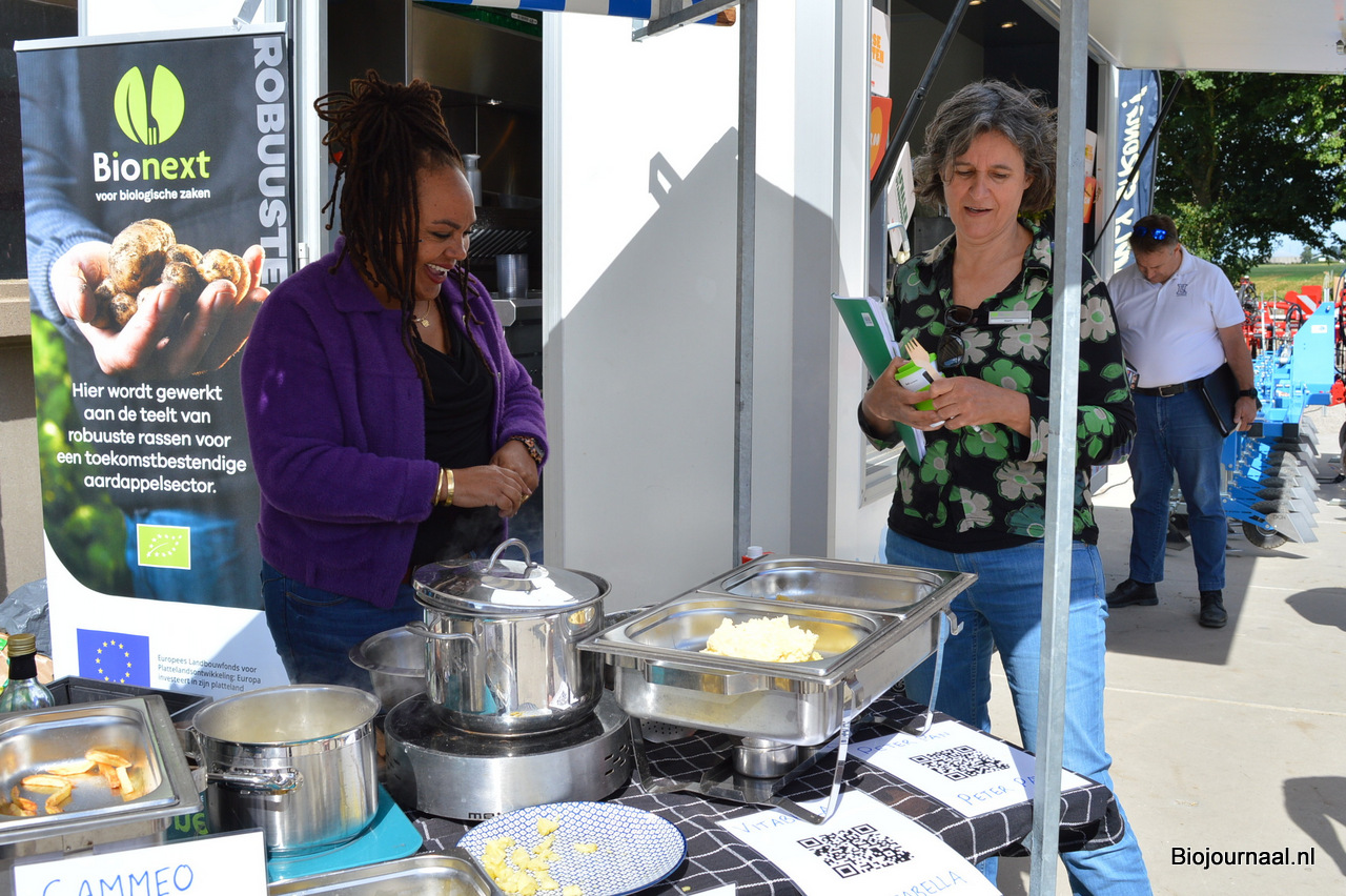 Tv-kok Sharon de Miranda kookte met robuuste aardappels op de BioVelddag. Ze stelde de 'Lekkerste robuuste bio-aardappel' op de proef.
