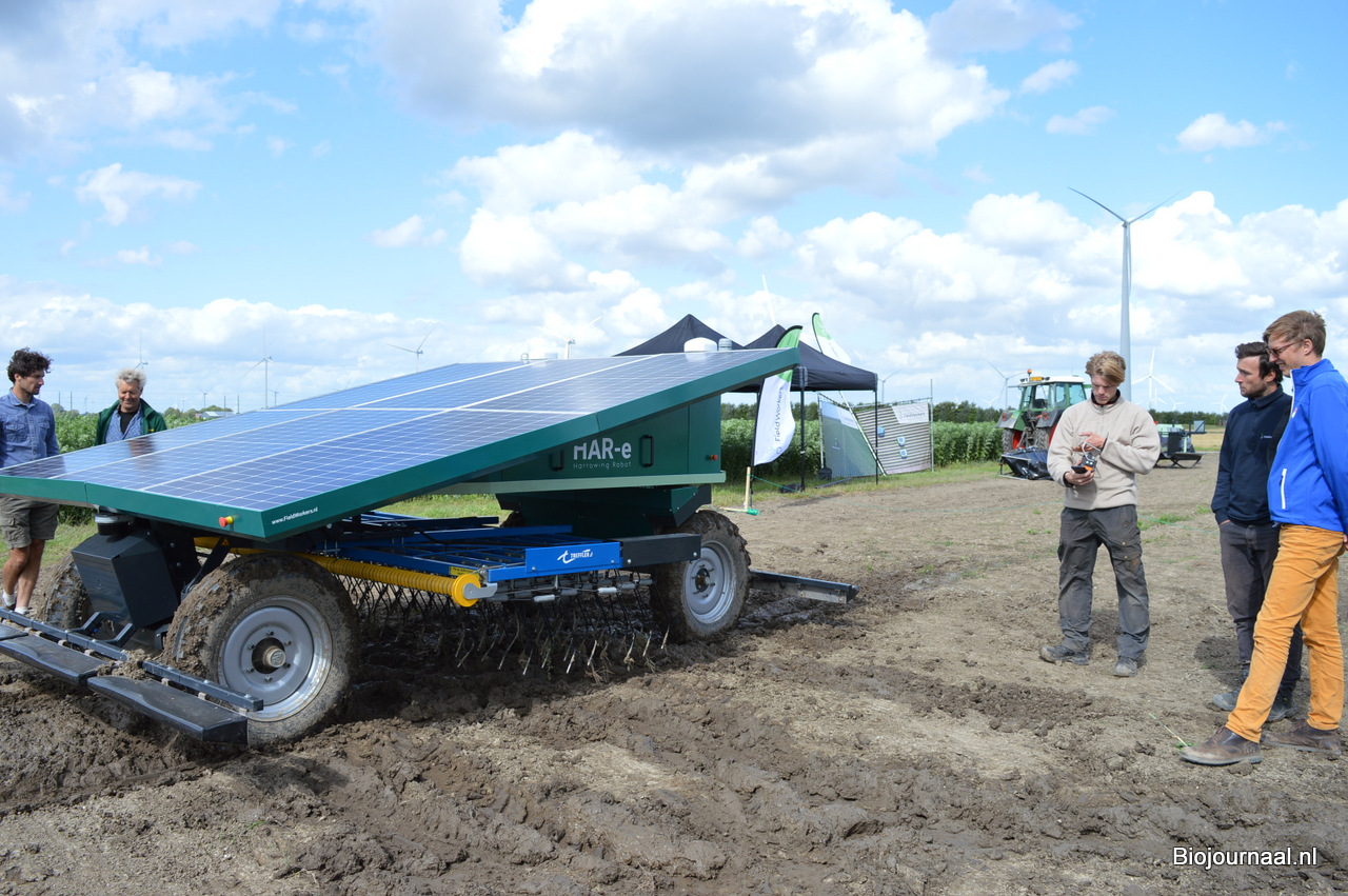 De Fieldworkers presenteerden na drie jaar ontwikkeling de autonome wiedeg machine HAR-e op de BioVelddag. Hiermee kan je volledig autonoom wiedeggen op zonne-energie.