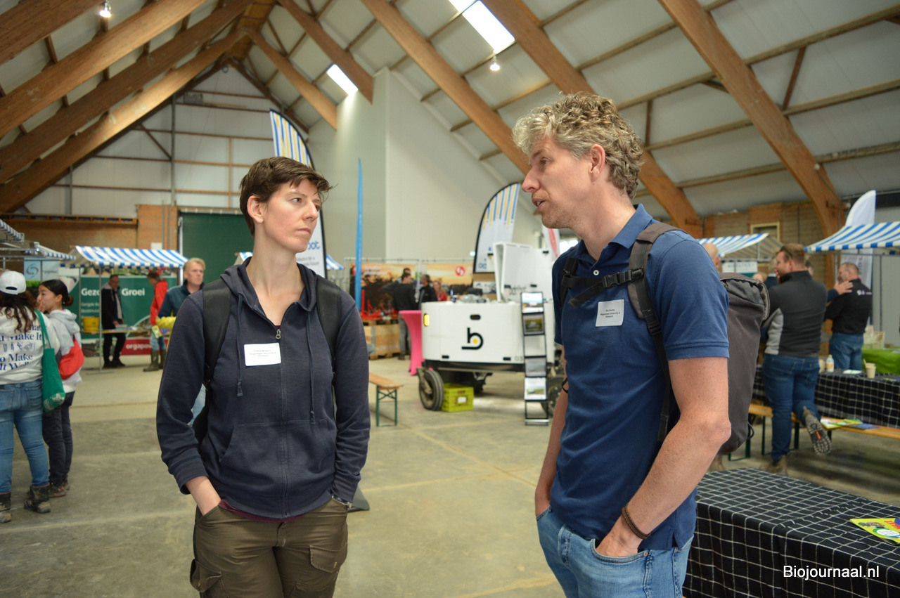 Iris Flamand van Louis Bolk Instituut met Jan Groen van Green Organics.