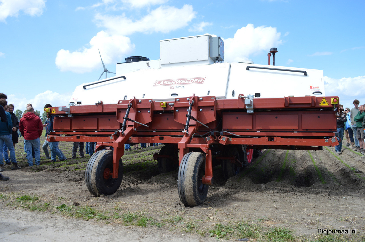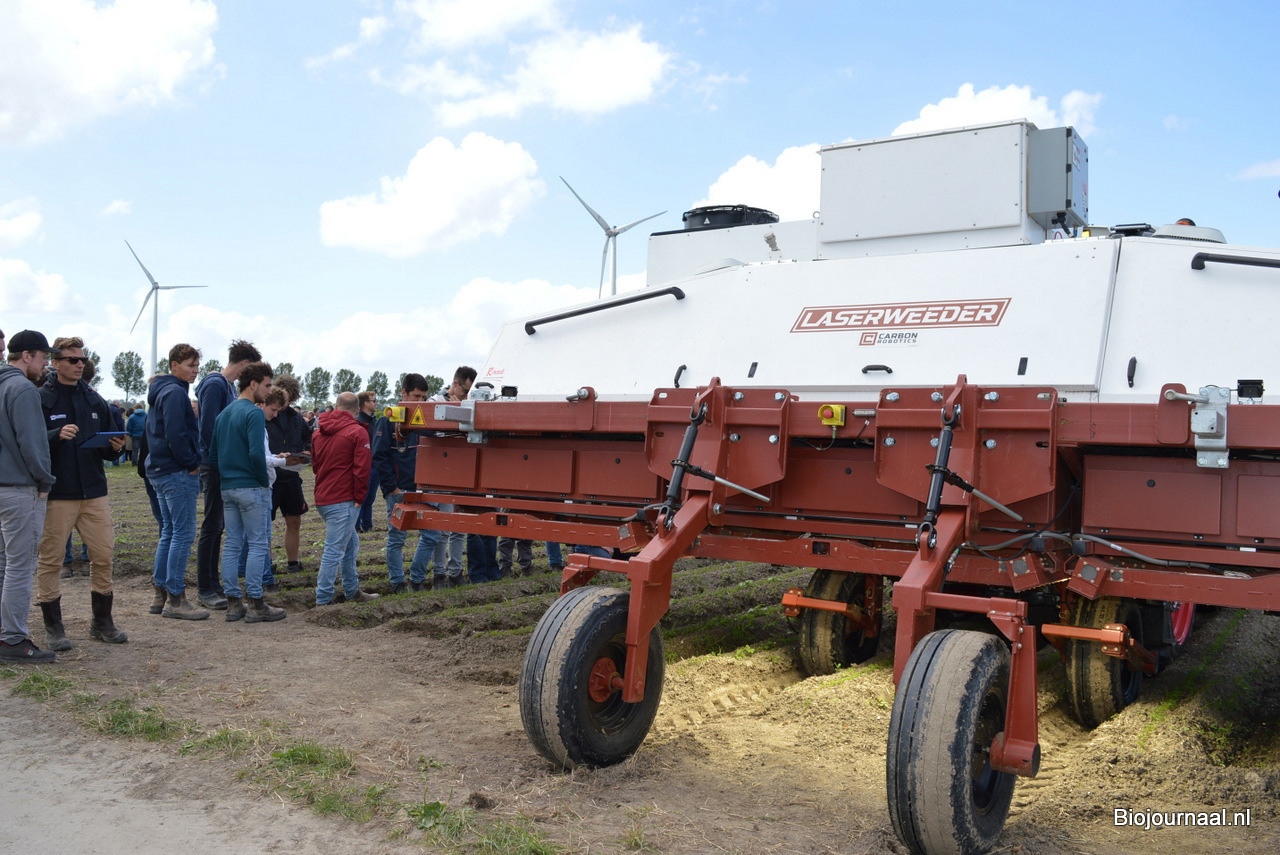 Voor velen het hoogtepunt van de BioVelddag 2024: De LaserWeeder van Carbon Robotics, die voor de demo halverwege de middag al veel bekijks trok.