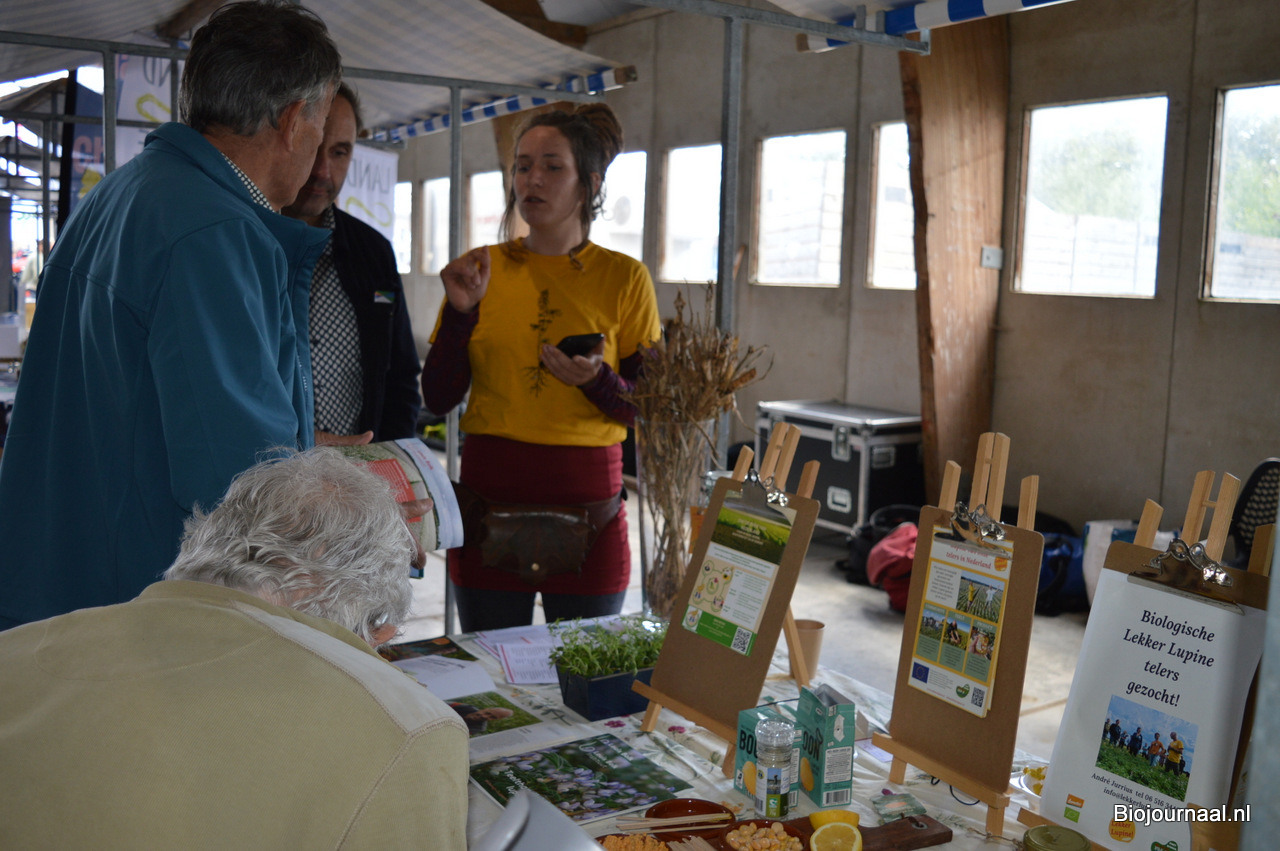 Ook Lekker Lupine stond met een goed gevulde kraam vol informatie over de biologische teelt van Lupine in de schuur.
