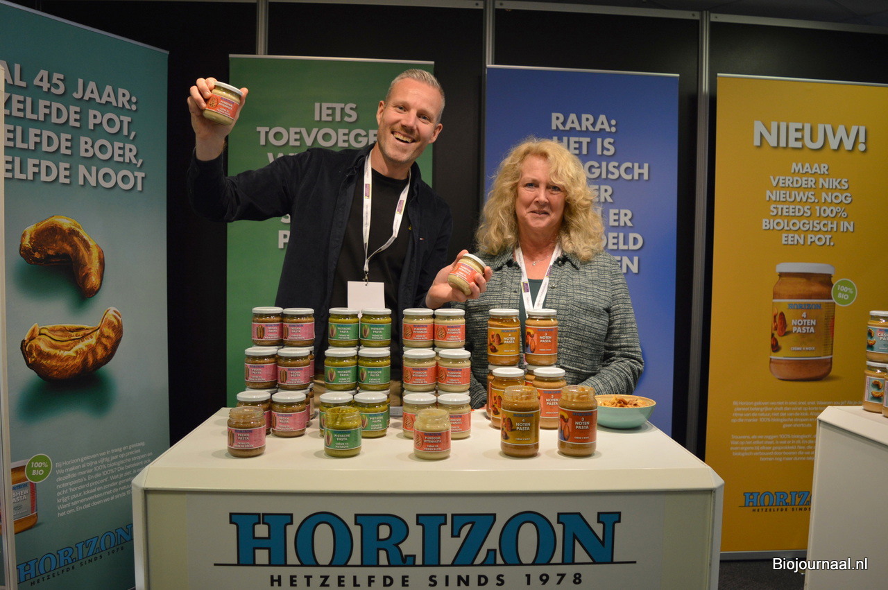 Klaas Hoving en Margareth Bos presenteerden de nieuwste telg in de Horizon-familie: pijnboompittenpasta.