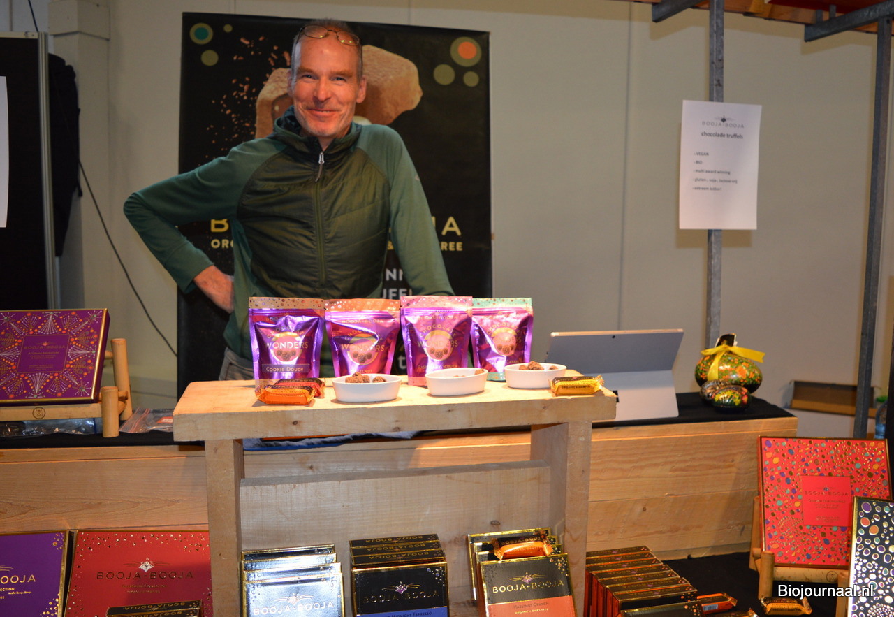 Bij Jelmer Daniëls kon men terecht voor meer informatie over de diverse biologische merken die door Goodfoods vertegenwoordigd worden. “De eerste deelname vorig jaar bleek zeker voor herhaling vatbaar. Dit is een prettige beurs om onze markt verder uit te breiden.”
