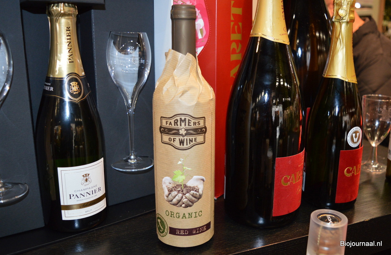 In deze stand kon men onder meer informatie inwinnen over deze biologische rode wijn.
