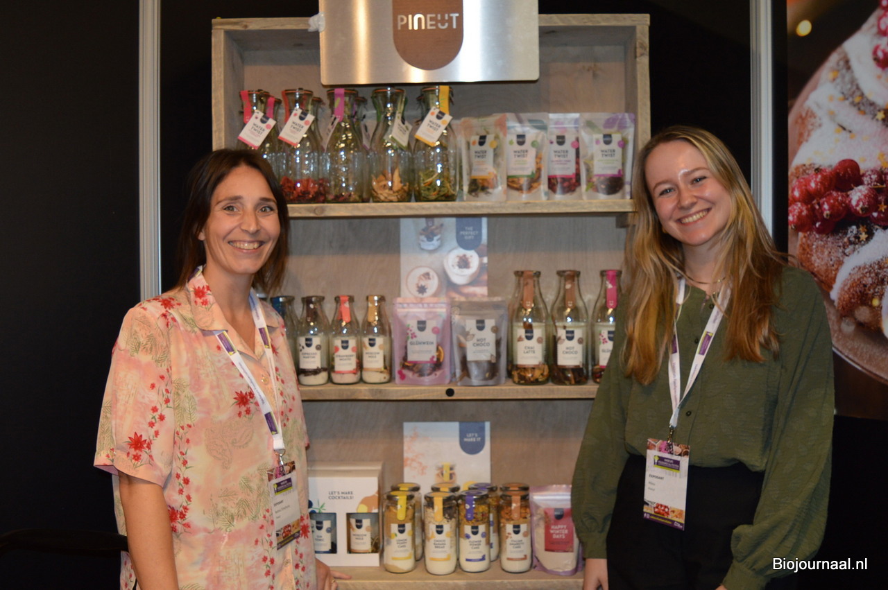 Nadine Schothorst en Milou Wieringh vertellen dat steeds meer producten van Pineut biologisch zijn.