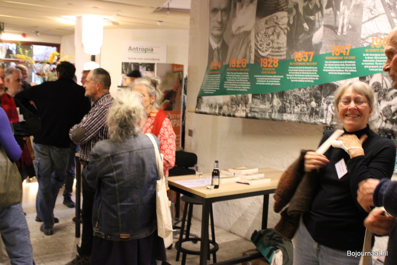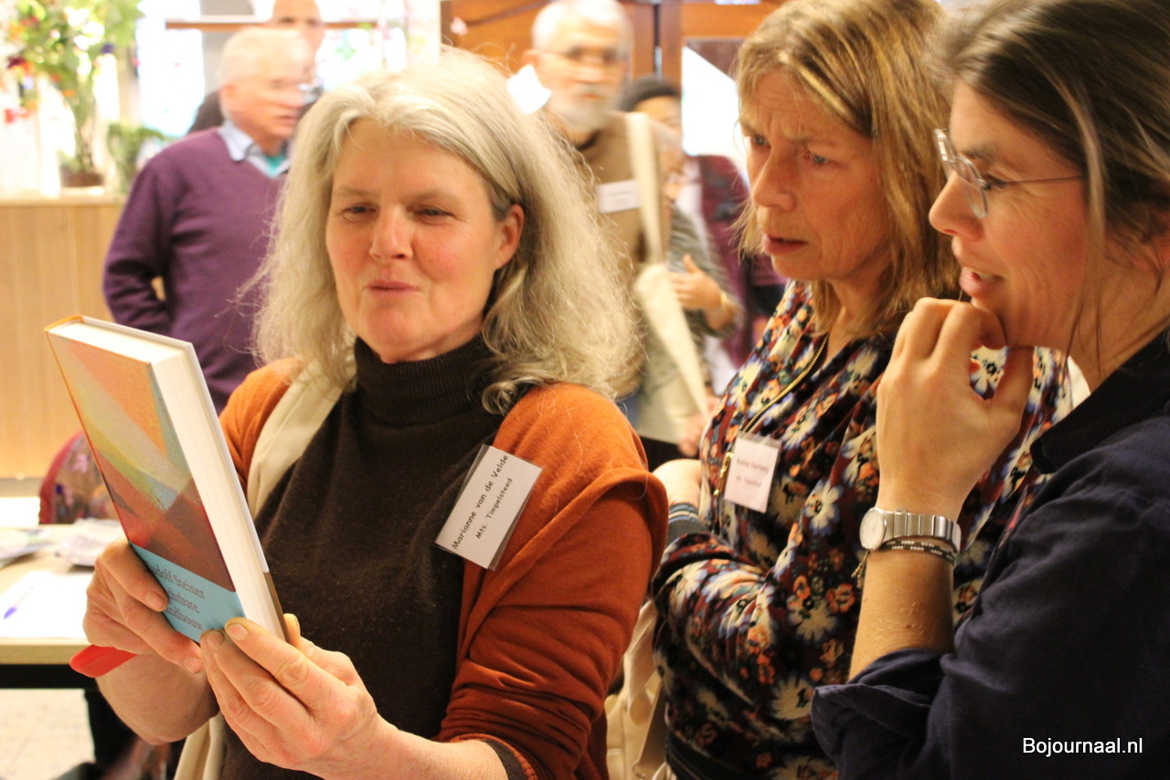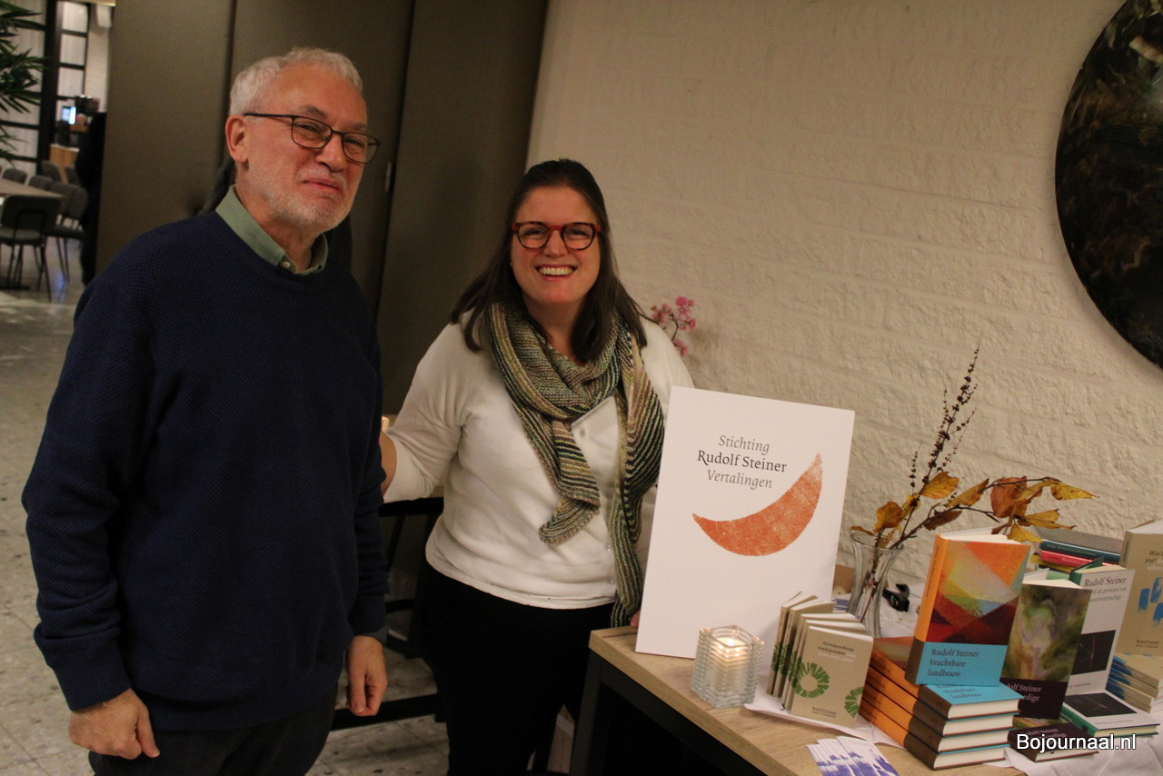 Veel belangstelling voor de vertalingen van Rudolf Steiner. Marianne van de Velde (Maatschap Timpelsteed) houdt het boek vast.