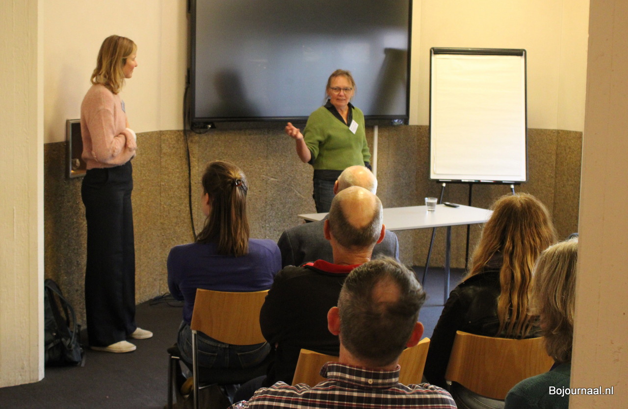 De workshops werden uitgebreid ingeleid. Links, Sociologe Charlotte Sederel rechts, Tineke van den Berg Voorzitter Stichting Demeter.