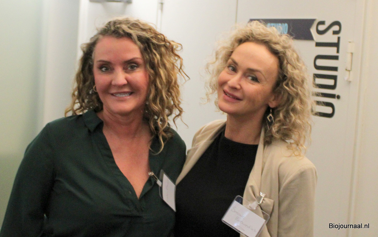 Links Kim Huppertz bestuurslid BioBorrel naast Simone