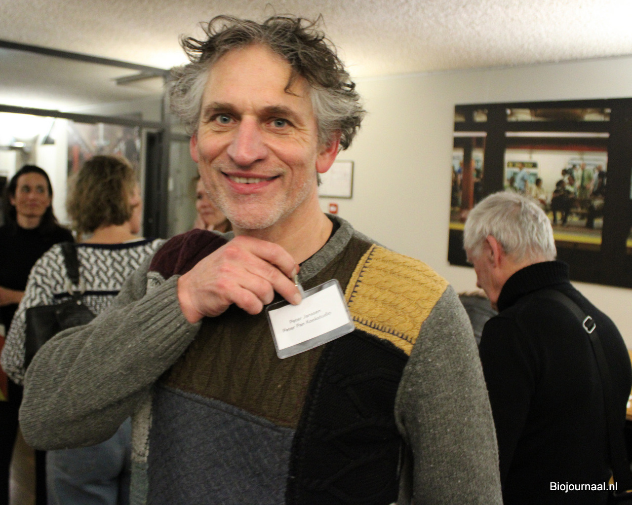 Voorzitter Jan Groen bedankt Thomas van Hasselt voor zijn inzet voor de BioBorrel en ontvangt een beeldje, dat de eenheid van de biologische cirkel symboliseert. Thomas gaat zeer binnenkort naar de VS, om onder andere ook daar Bio Borrels te organiseren.
