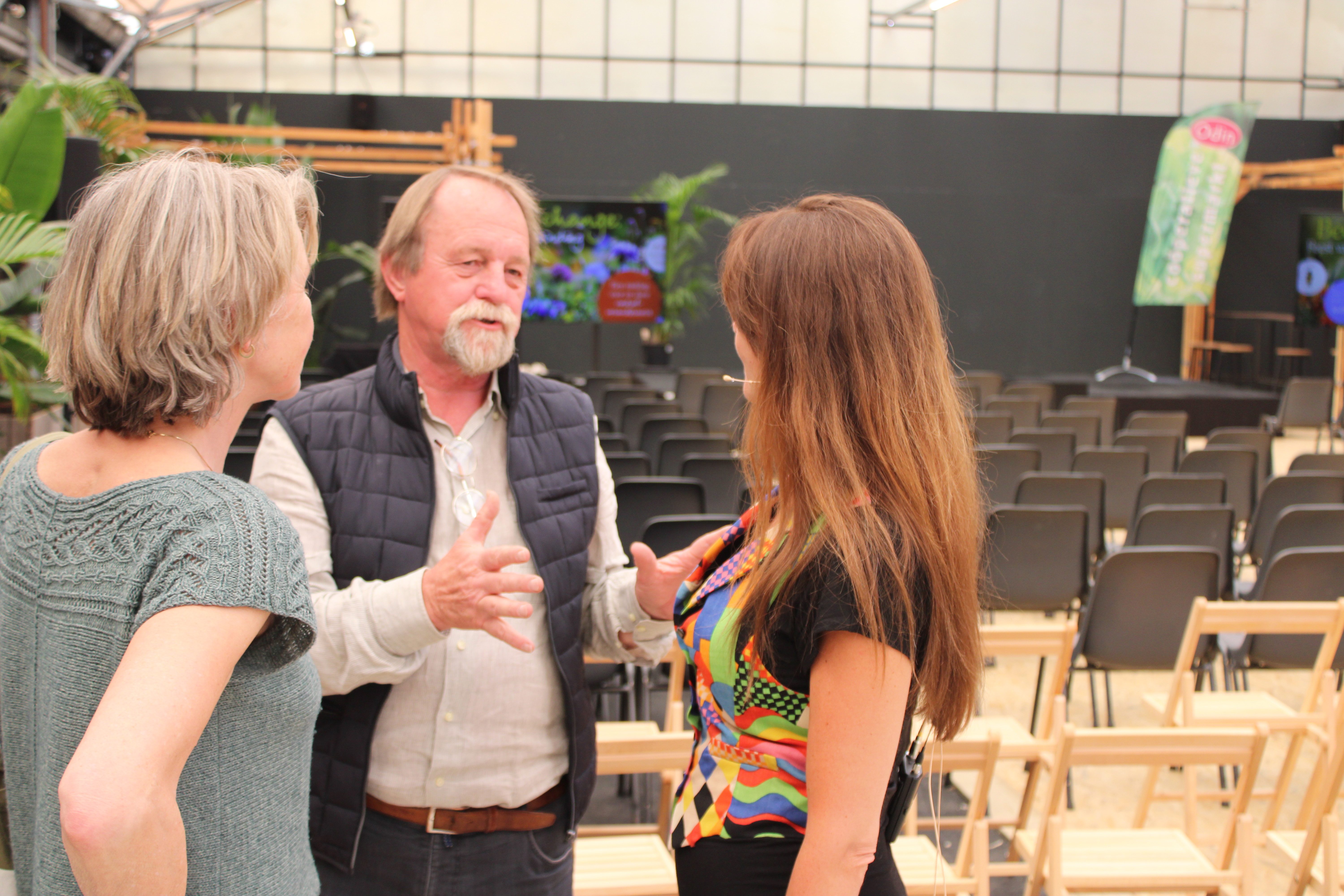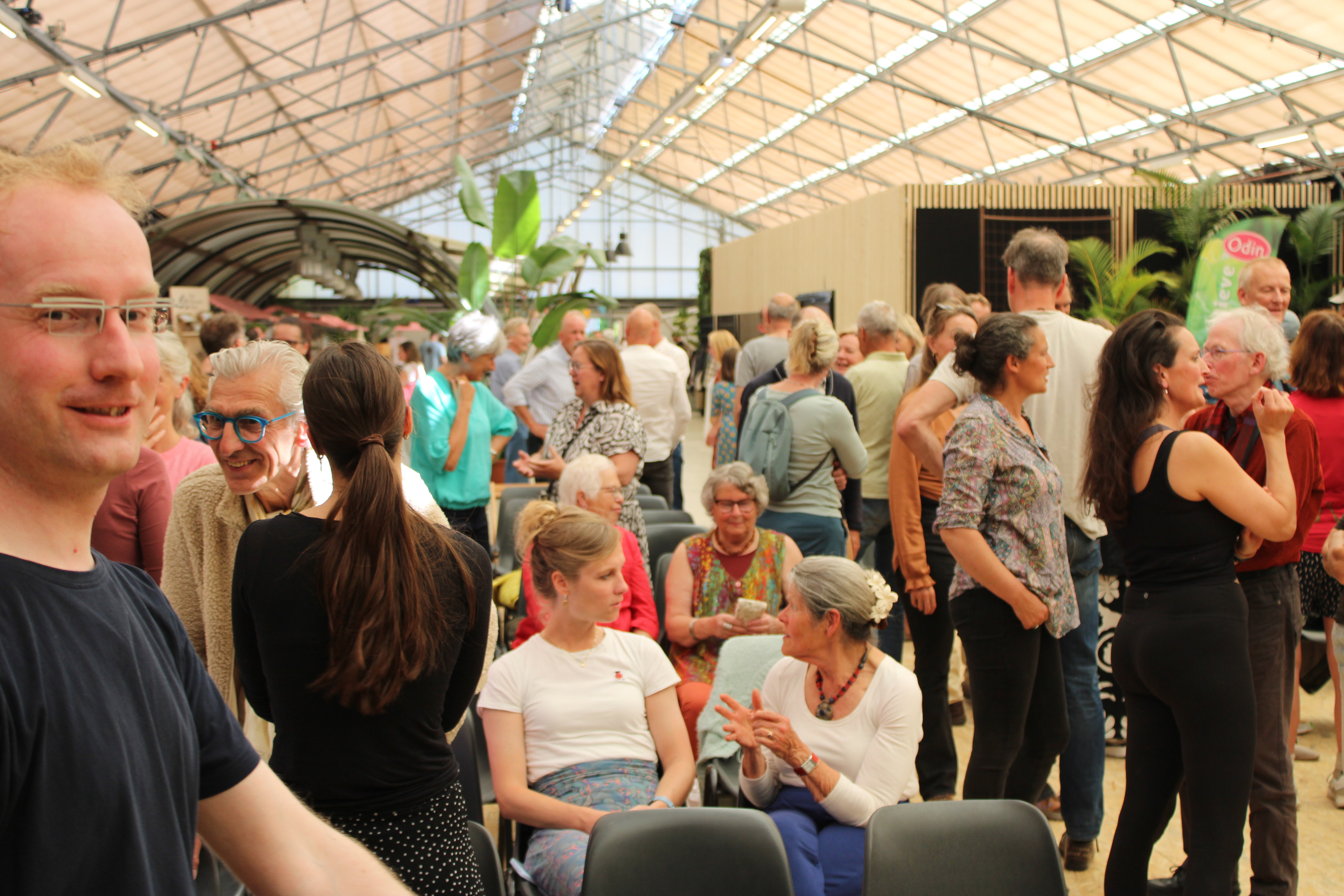 Merle Koomans algemeen directeur van Odin in gesprek met een van de driehonderd genodigden