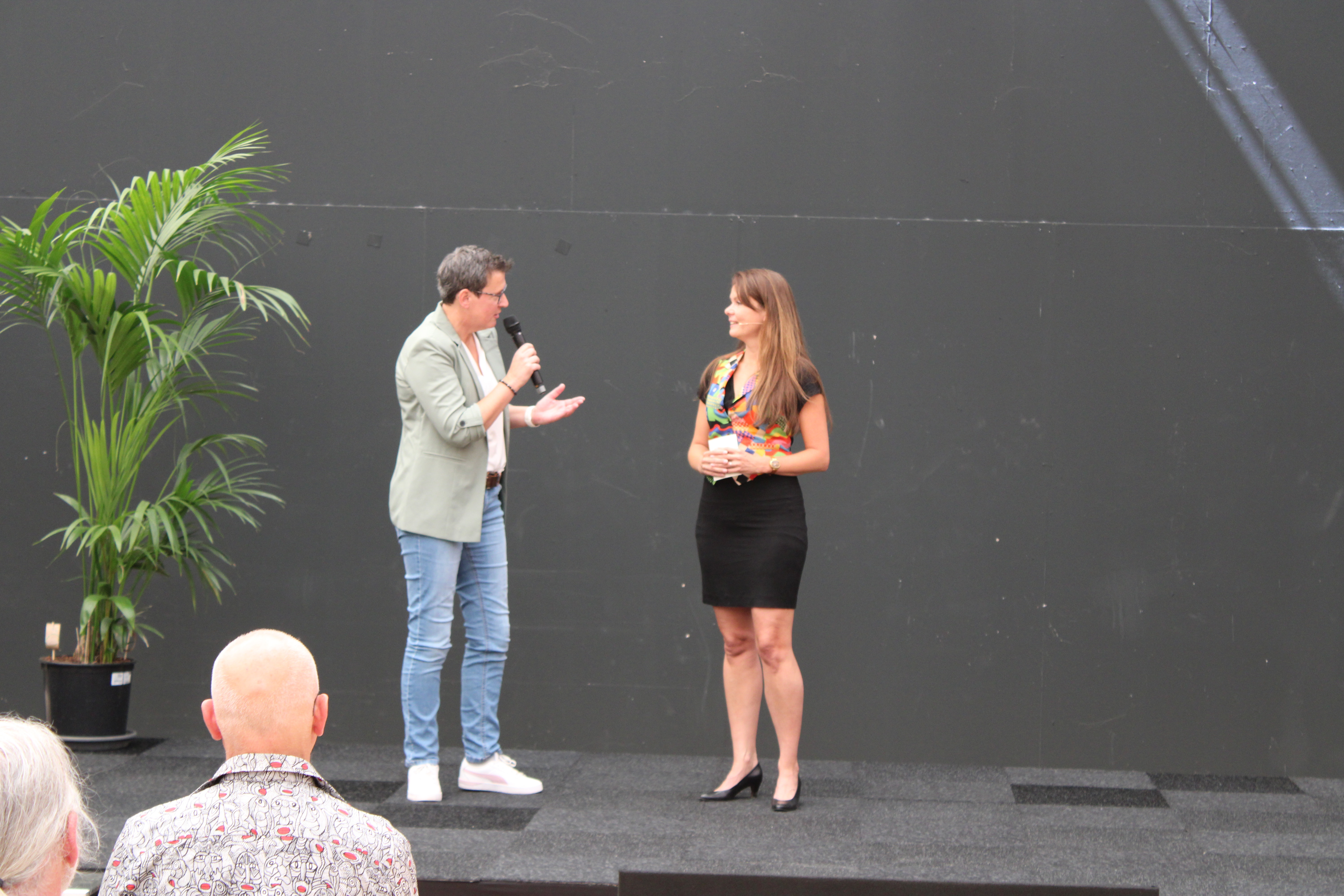 Merle Koomans algemeen directeur van Odin in een sprankelende interactie met gespreksleider Esther Molenwijk