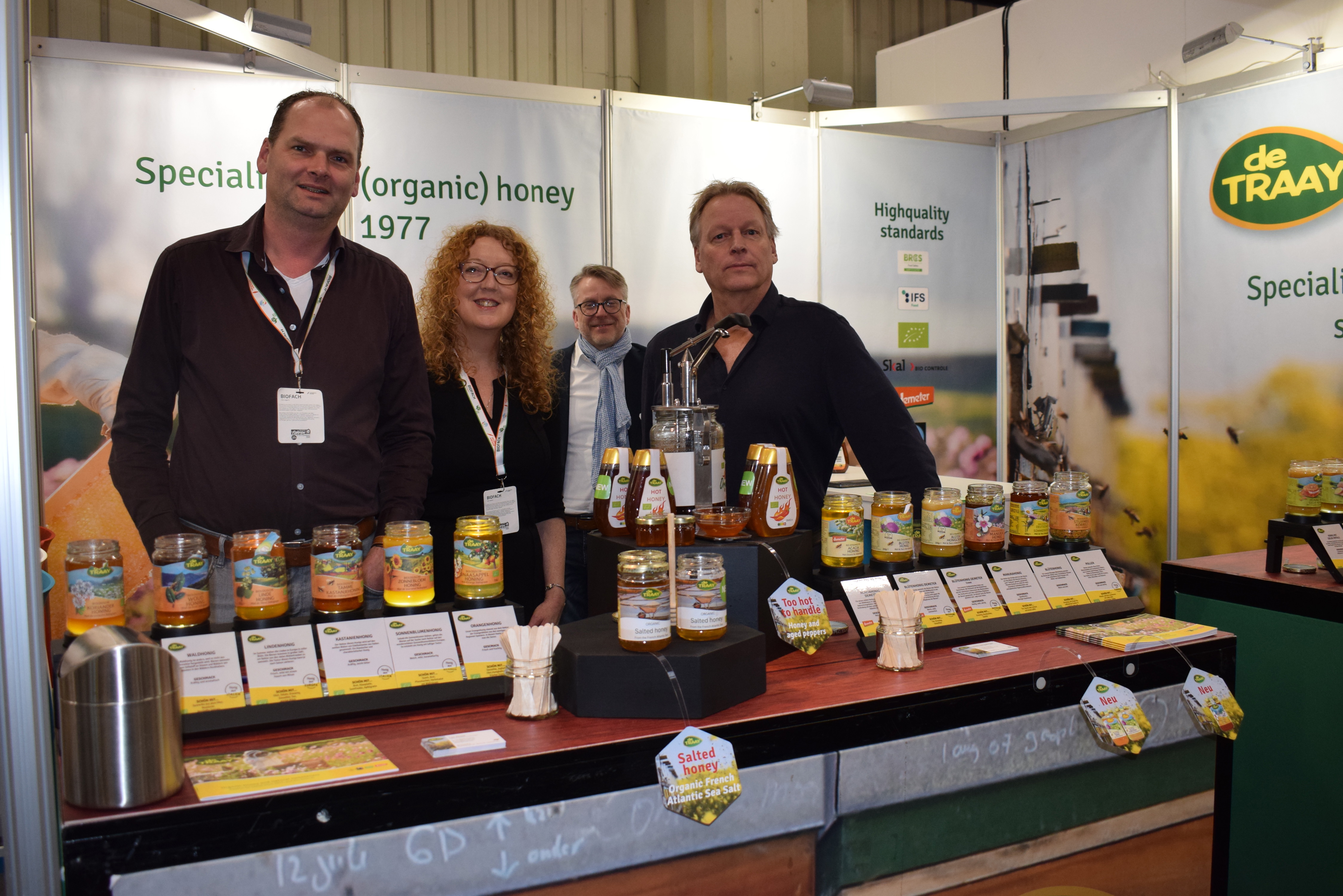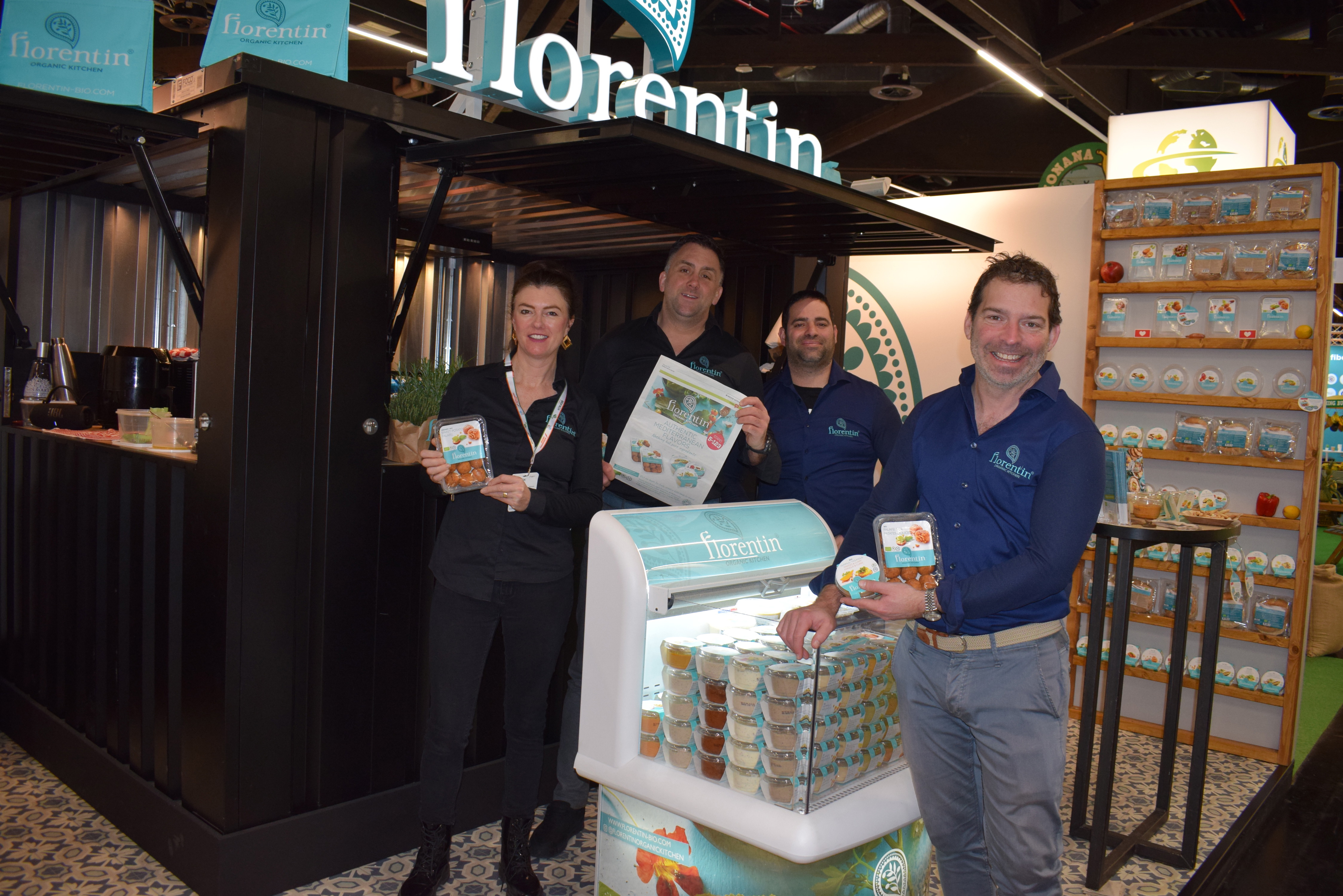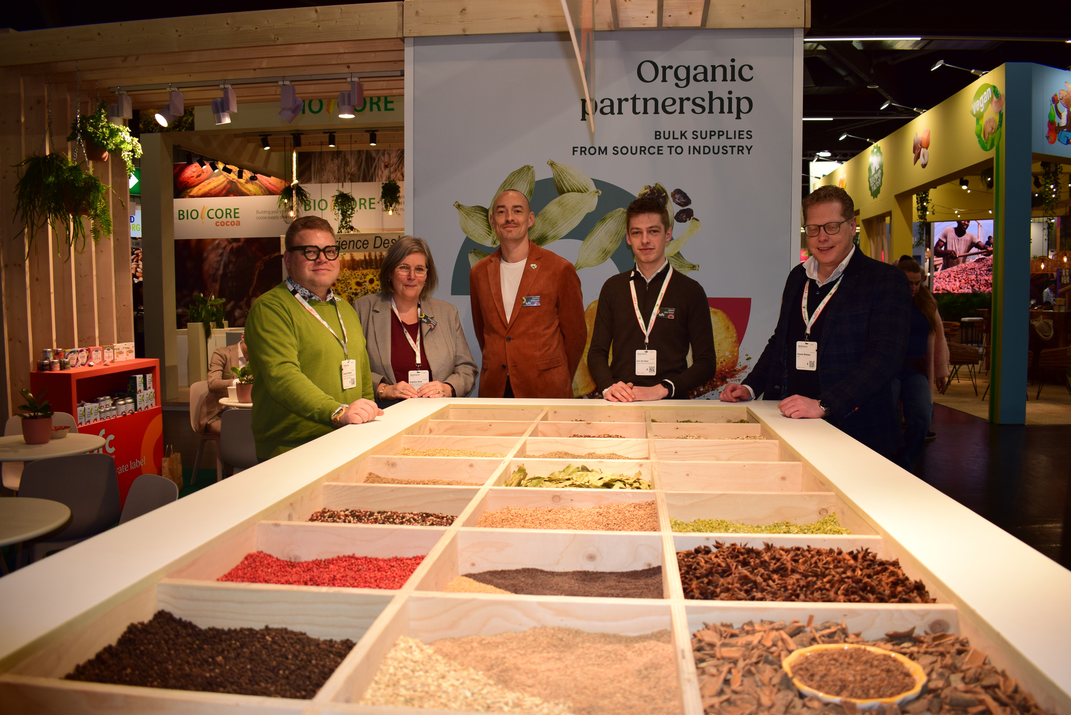 De kruidige stand in de nieuwe huisstijl van Organic Flavor Company vertegenwoordigd door Stephan Böttger, Dusty Palijana, Angelien Beek en Steven Kleinjan