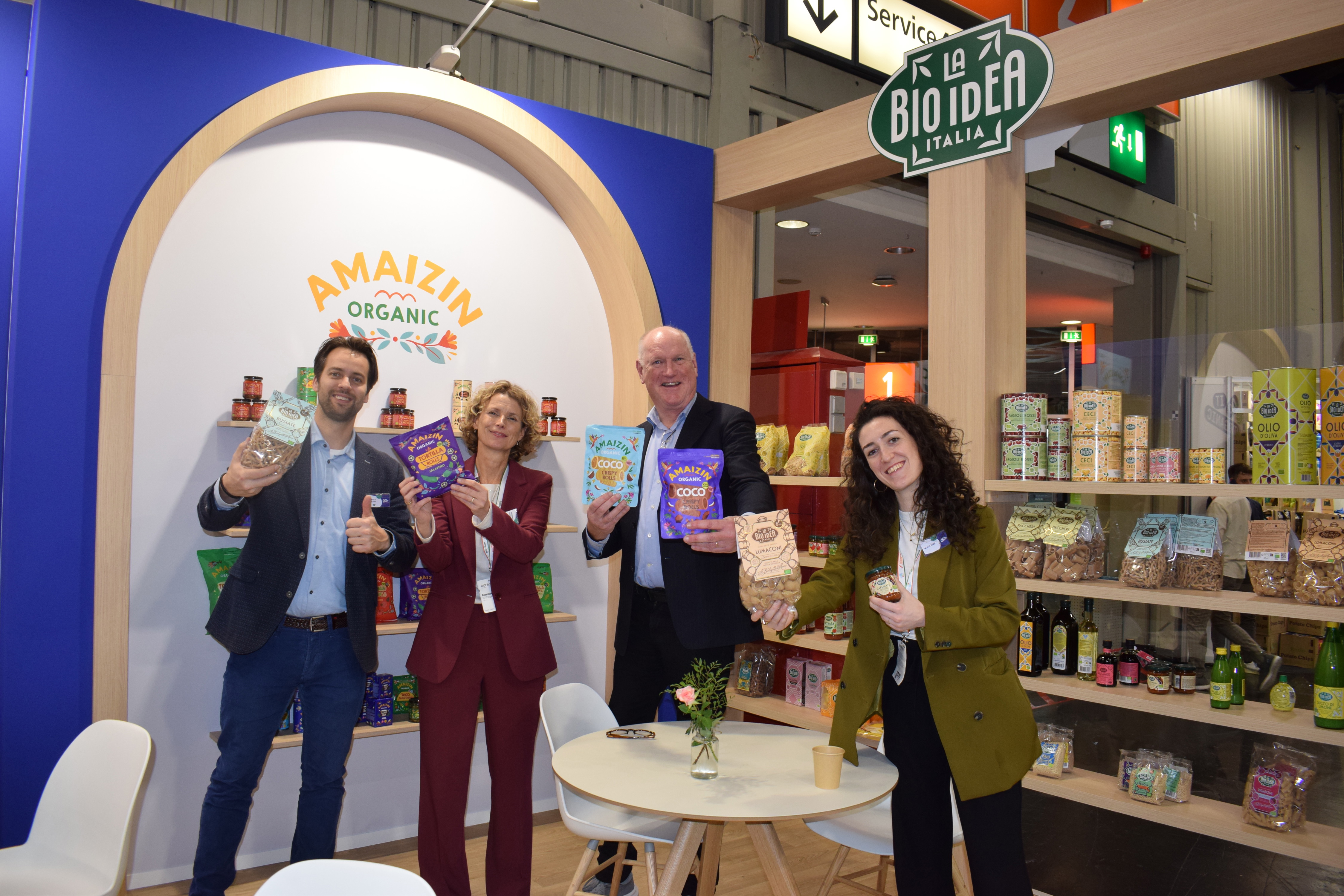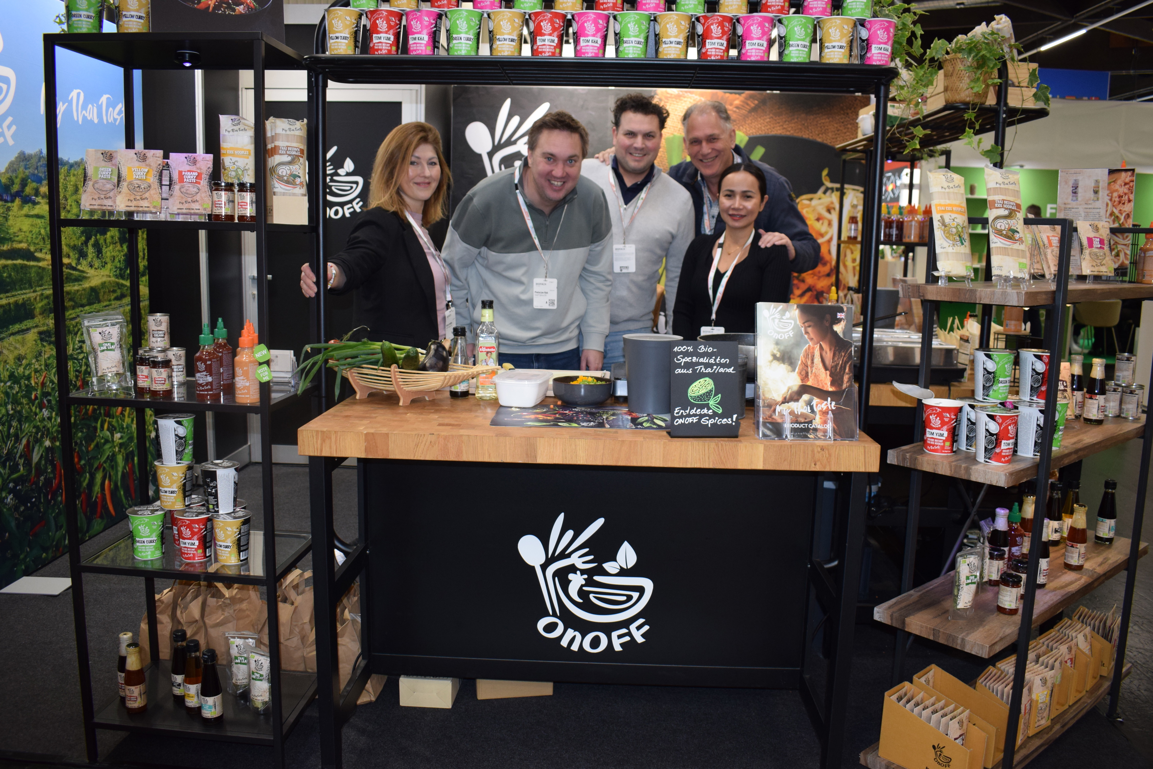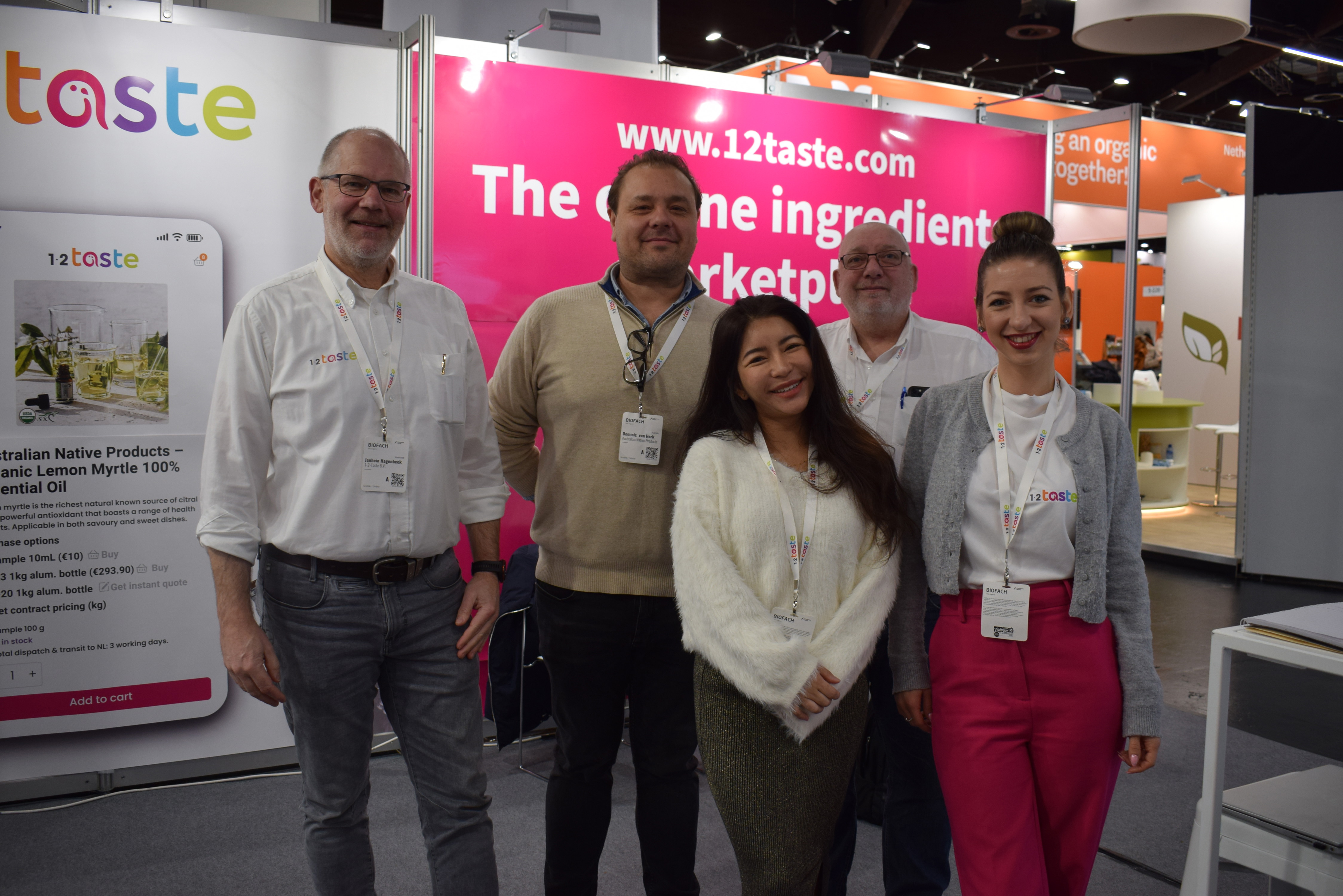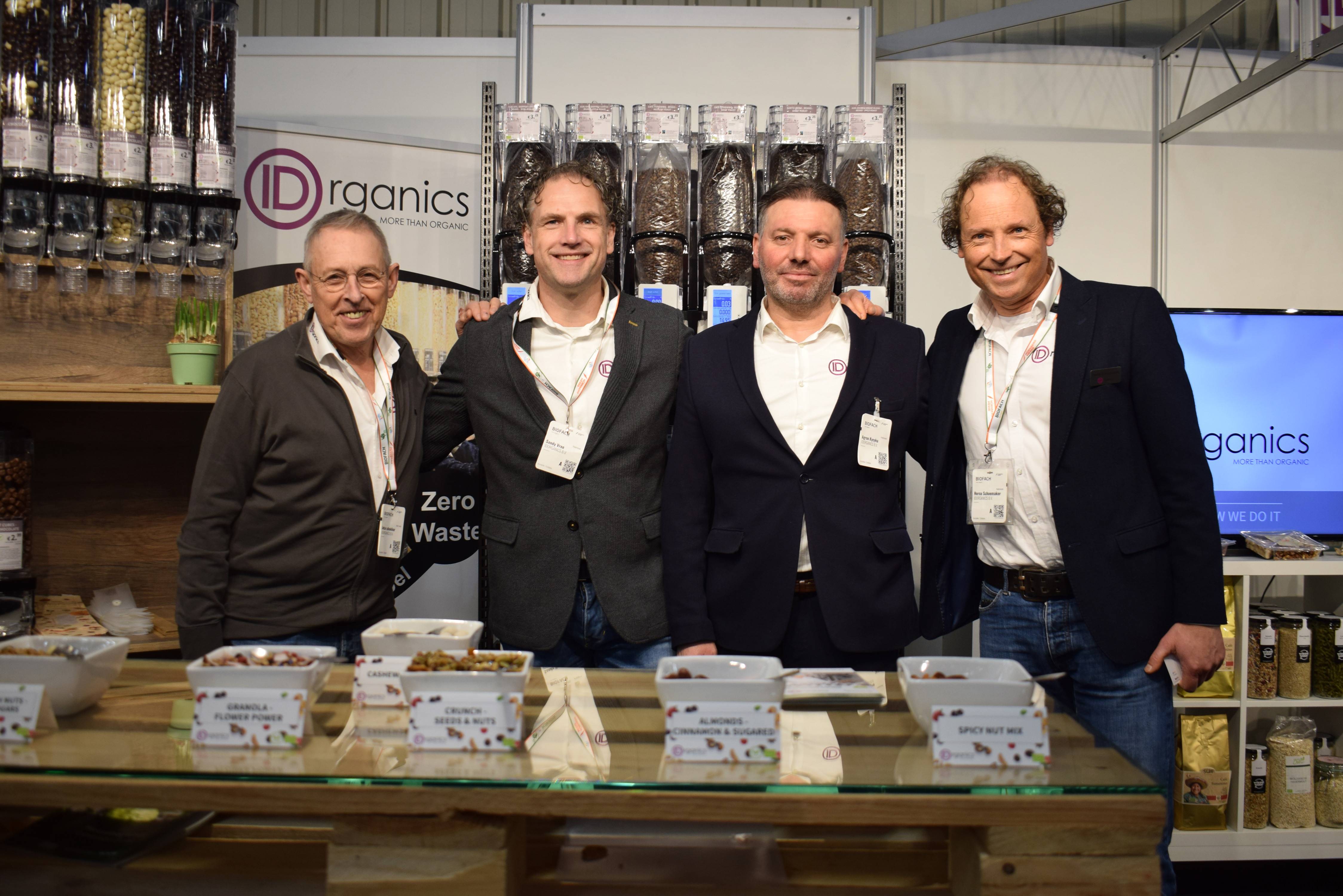De kruidige stand in de nieuwe huisstijl van Organic Flavor Company vertegenwoordigd door Stephan Böttger, Dusty Palijana, Angelien Beek en Steven Kleinjan