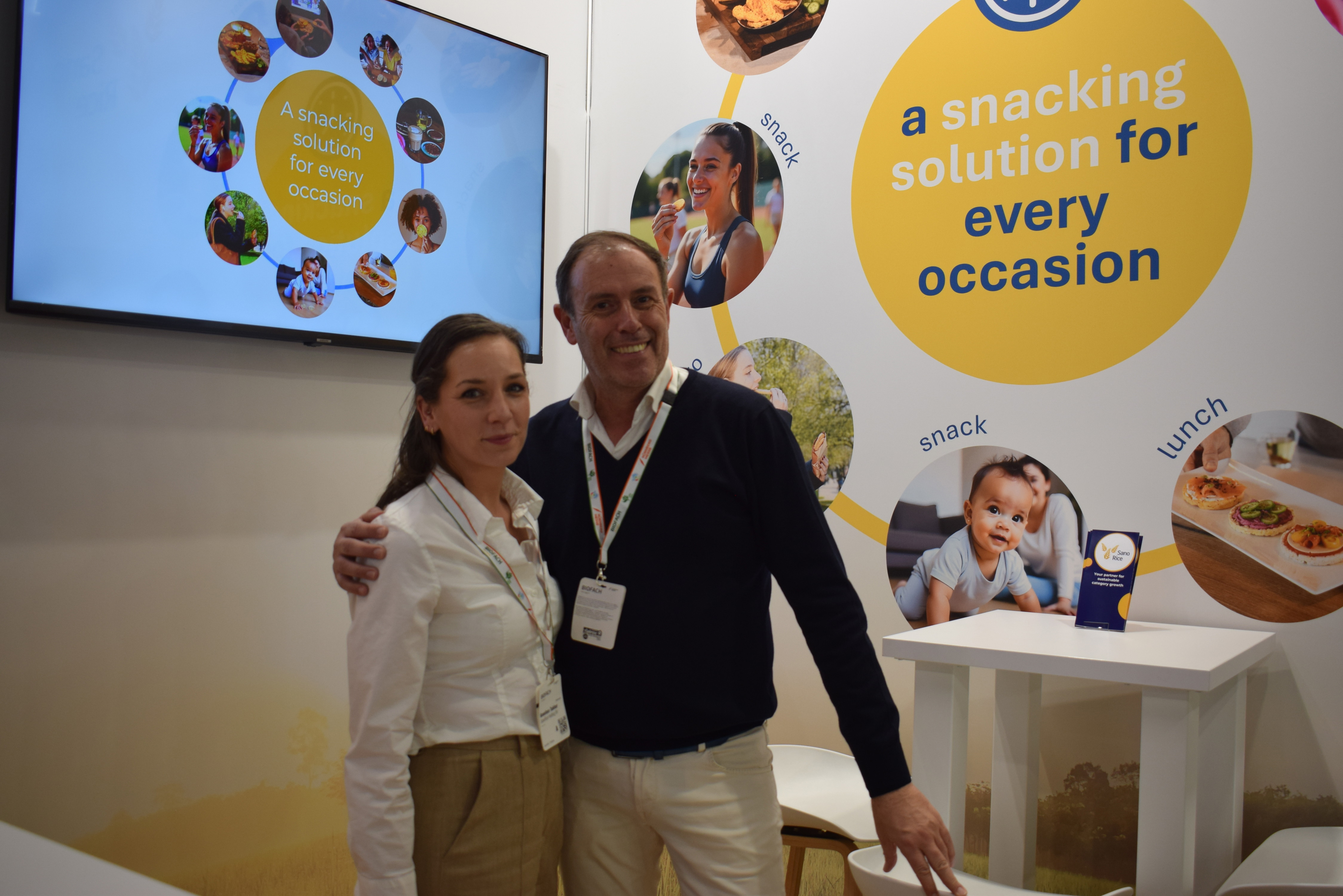 Anneloes Tukkers en Pieter-Paul Janssen van SanoRice Holding hebben snacks voor elke gelegenheid
