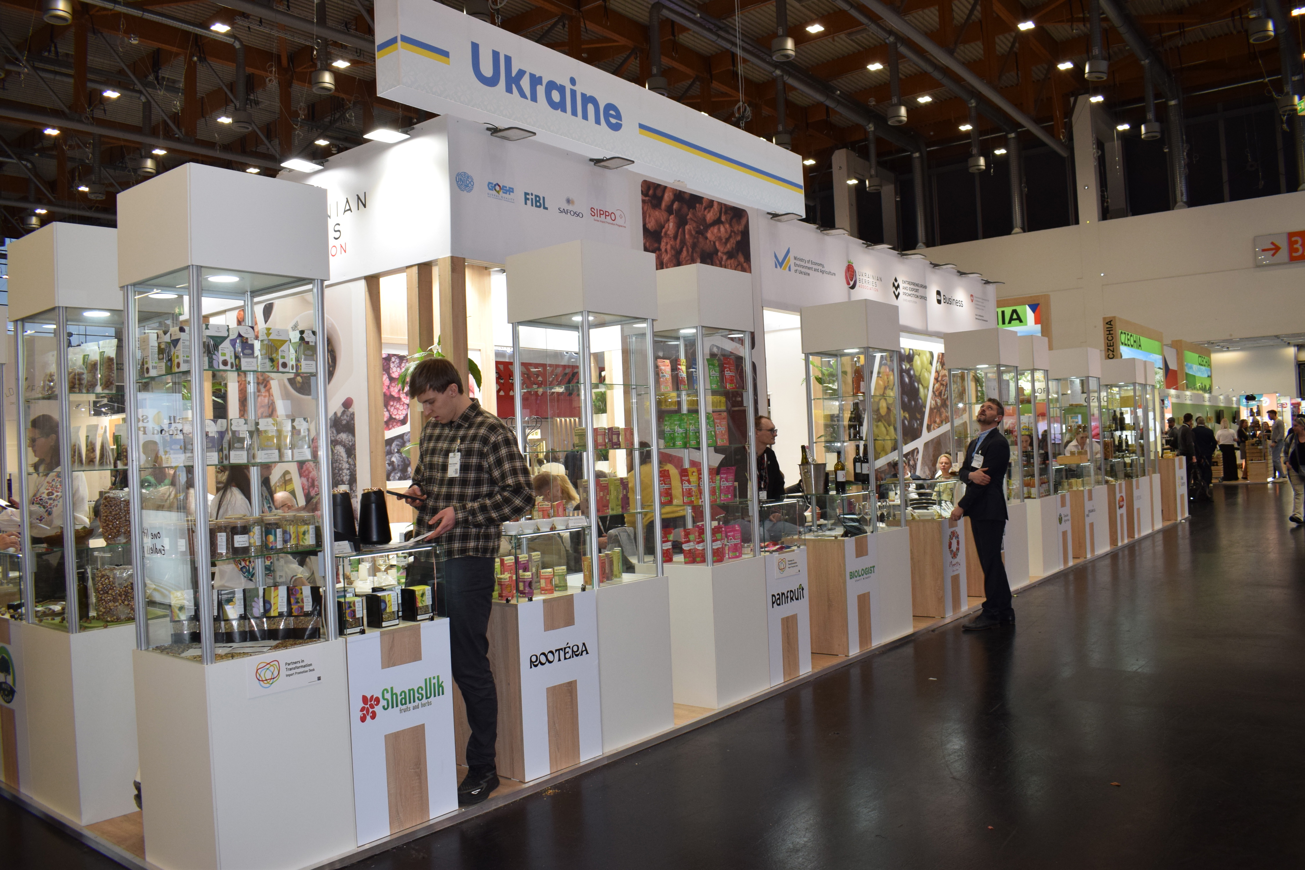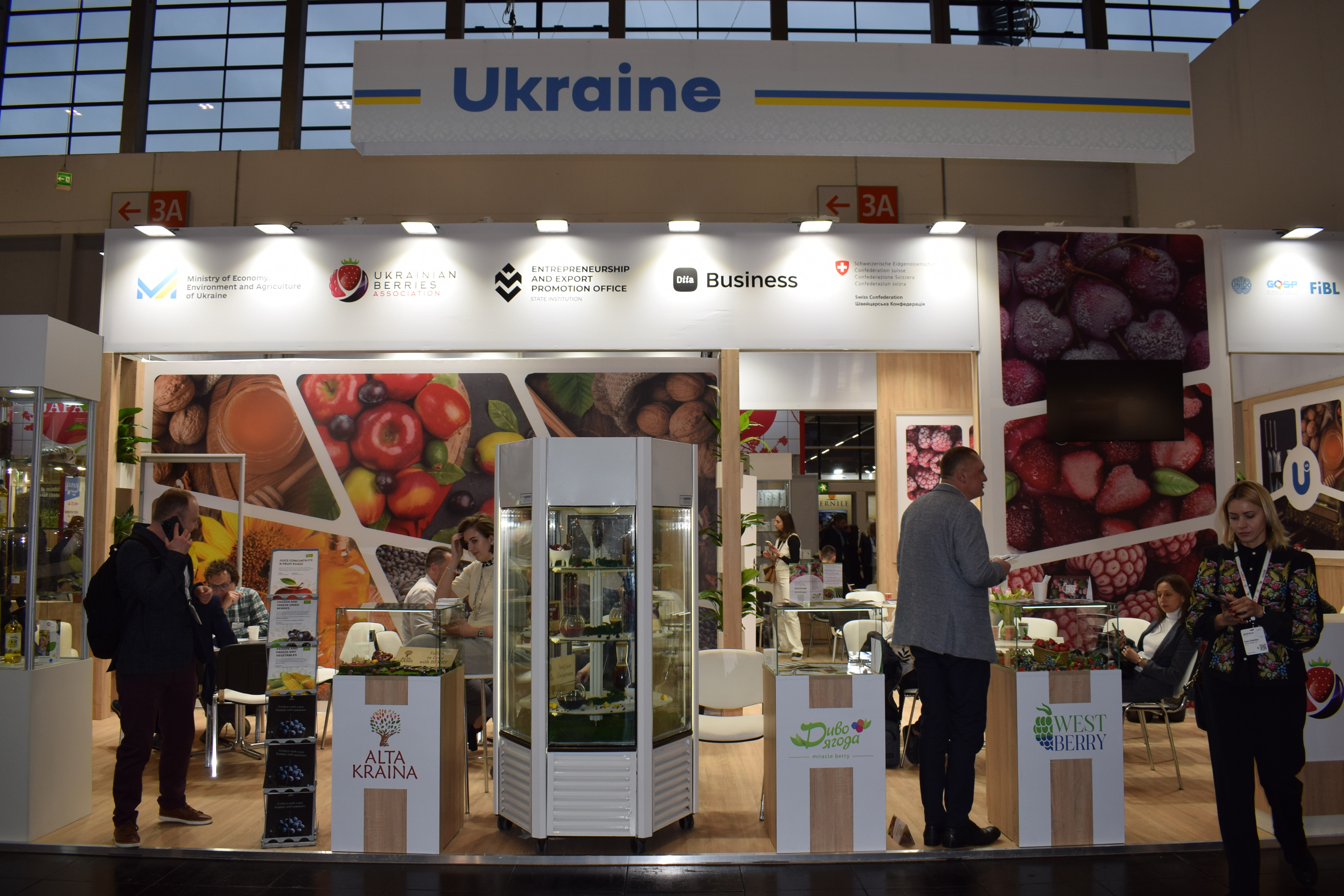 26 exposanten uit Oekraïne, waaronder 15 bessen- en notenexporteurs in een gezamenlijke stand