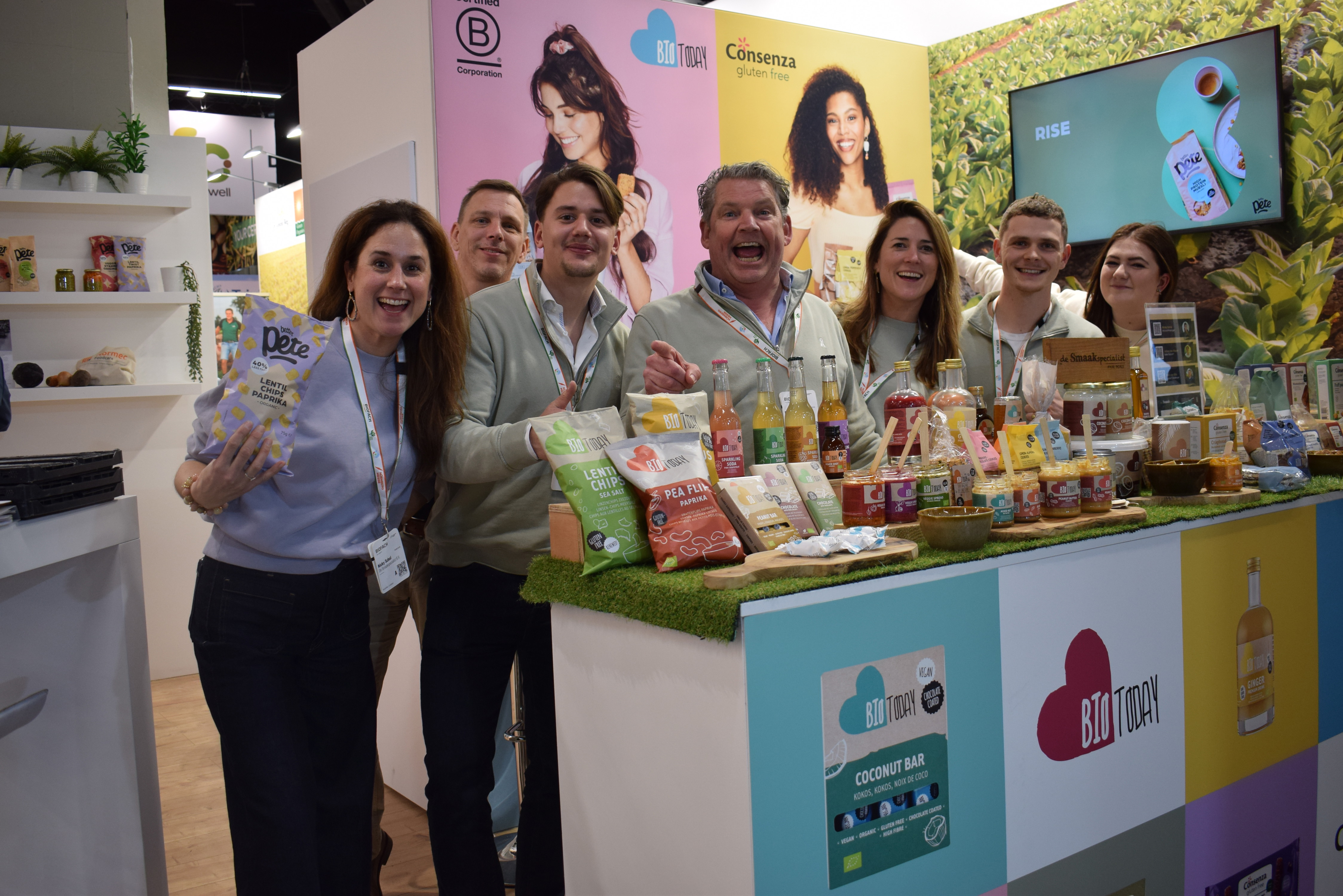 Vrolijkheid alom op de stand van De Smaakspecialist. Aan het einde van beursdag 2 hebben deze smaakspecialisten nog altijd goede zin: Nicky Schol, Julien ten Napel, Anneloes Hoorneman, Pieter Dirven, Rob van Gils, Elke Verheijen en Ben Stigter