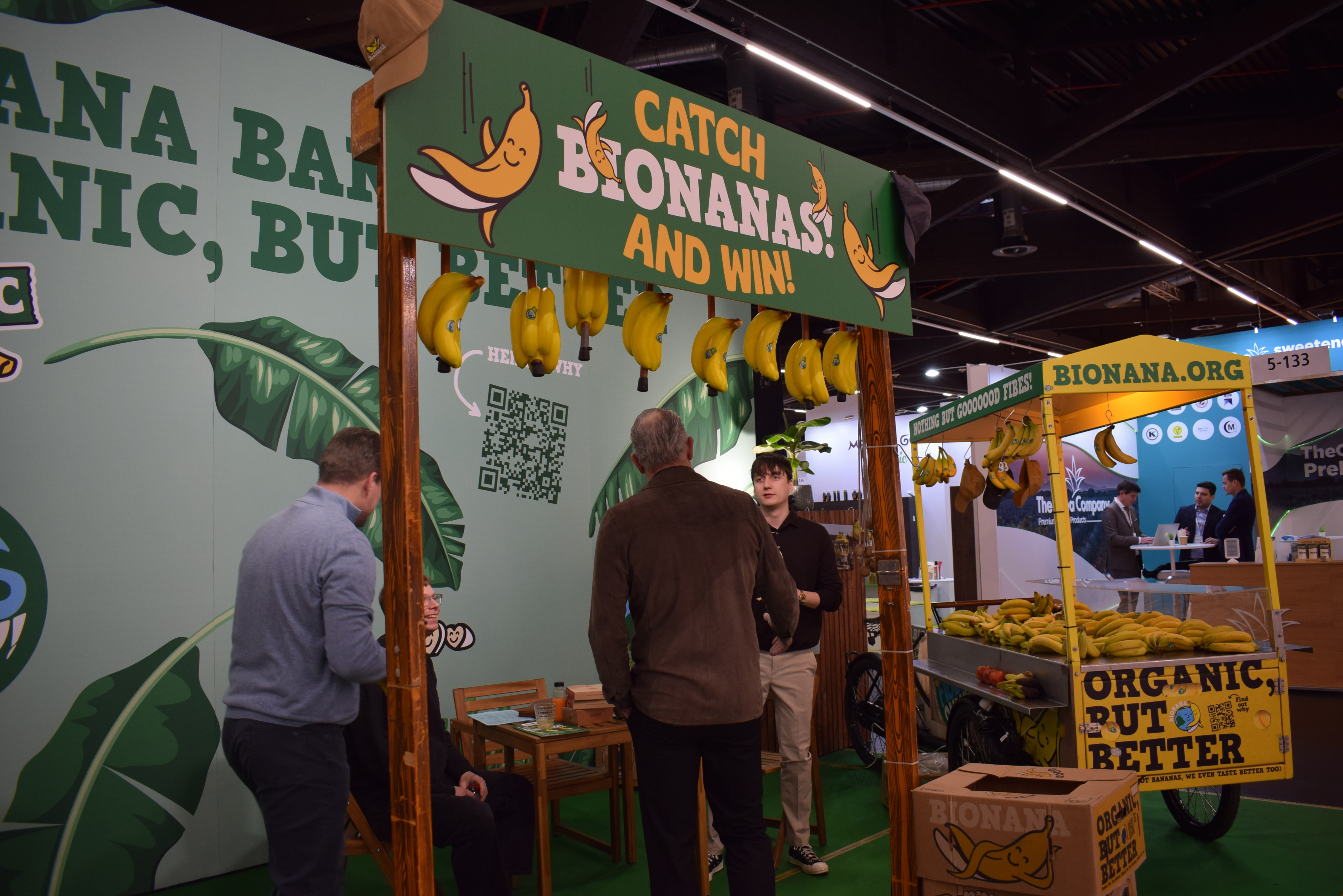 Heel veel Bionana’s op de stand van Biorey waar de reflexen van bezoekers werden getest bij Bionanas catch and win