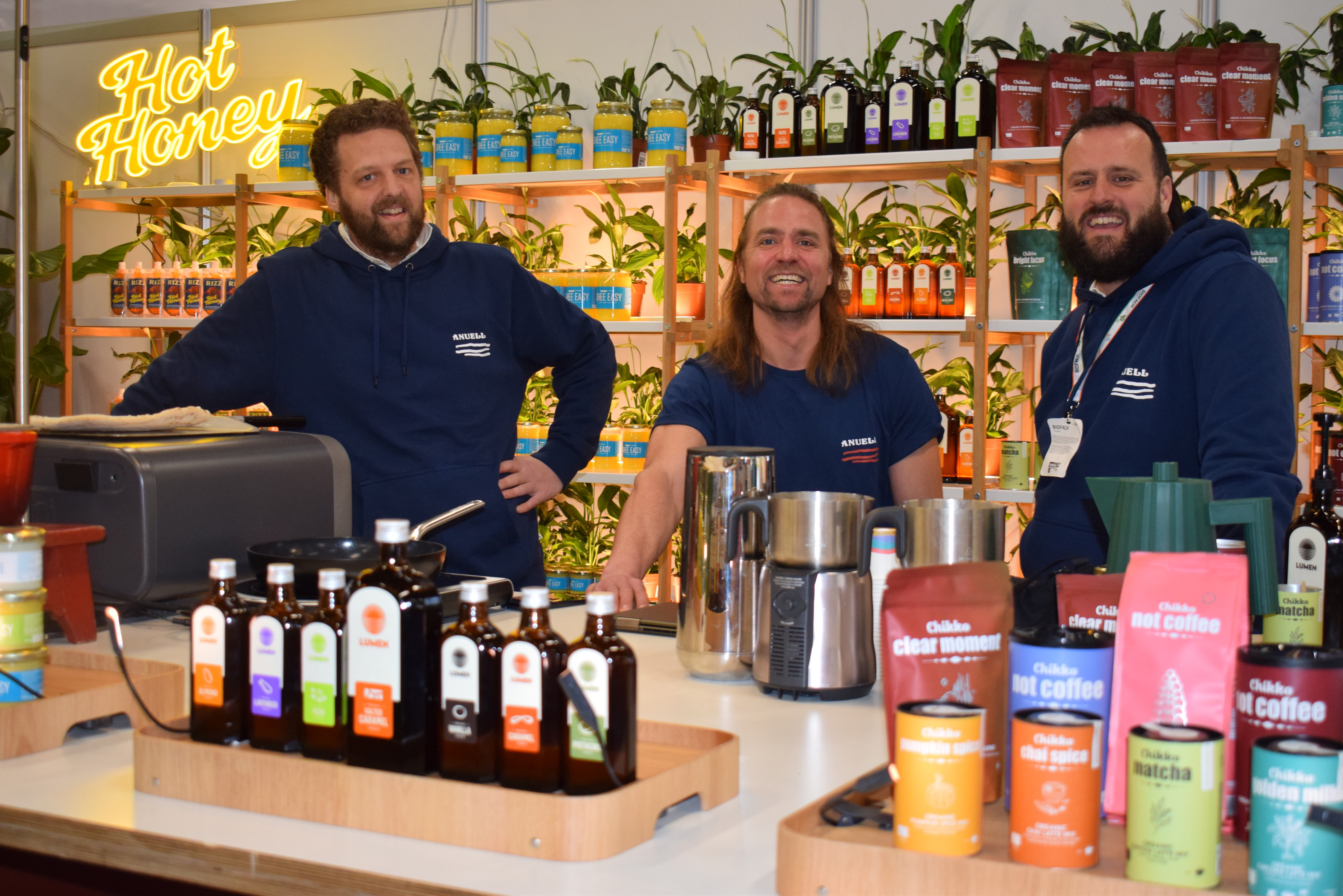 David Klingen Pepijn Best en Rein de Koning vol positieve energie bij Ghee Easy met hun nieuwe product Hot Honey en diverse koffiesiropen