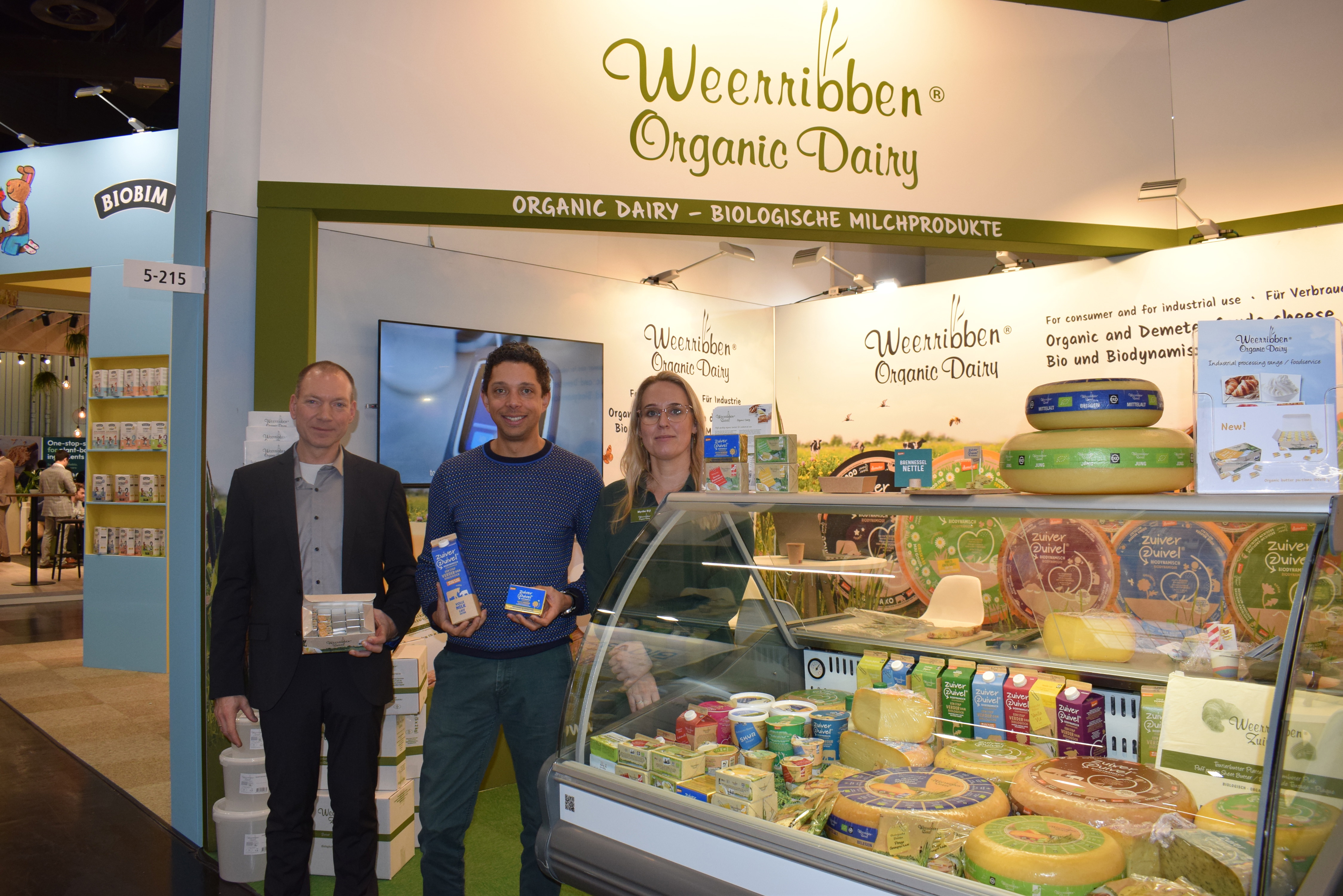 Edwin Crombrags, Jan-Paul Vegt en Myrthe Bijl van Weerribben Zuivel. Ze introduceren op BIOFACH 2026 onder andere portieverpakking van biologische roomboter 10 gram en Biologische Boeren Skyr