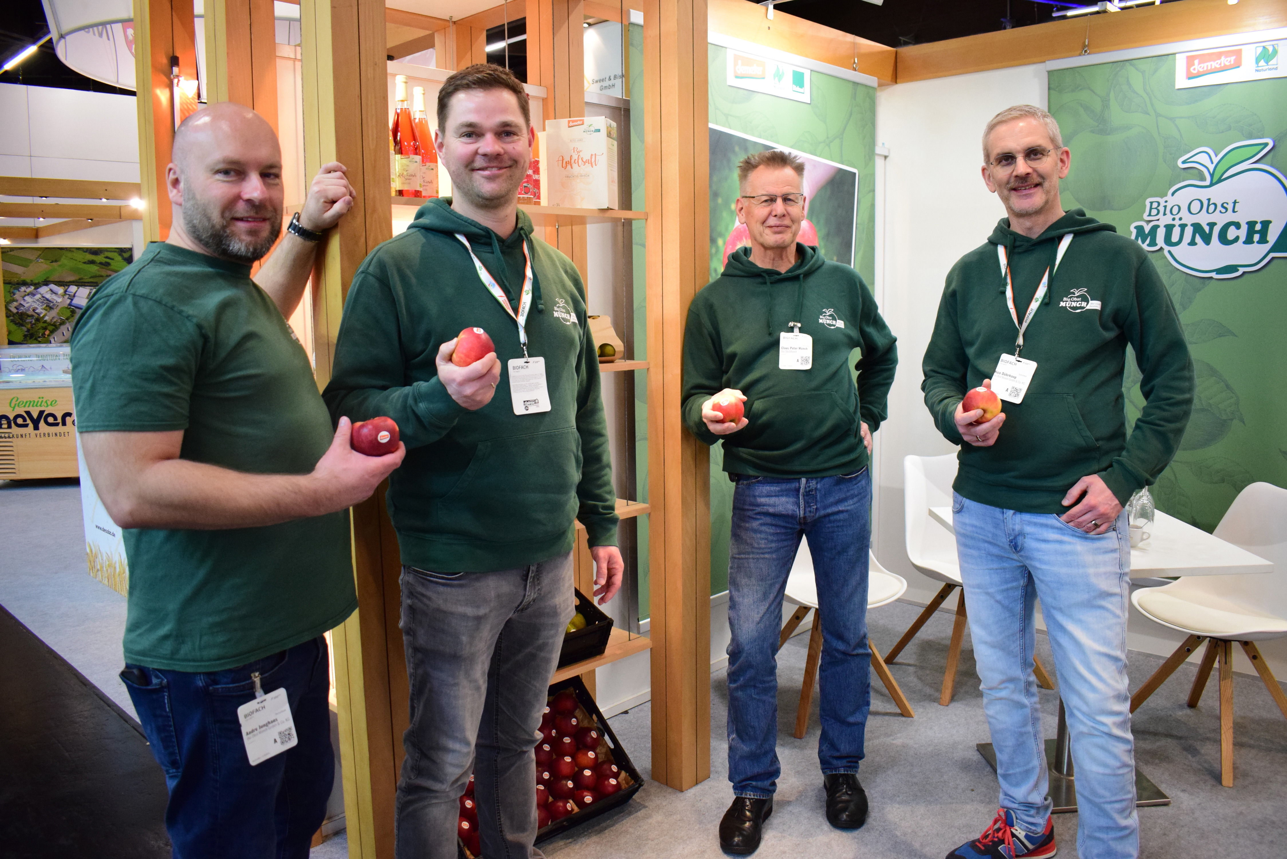 Marco Bartels Nico Dührkoop Andre Junghans Claus-Peter Münch van Bio Obst Münch met een appeltje voor de dorst