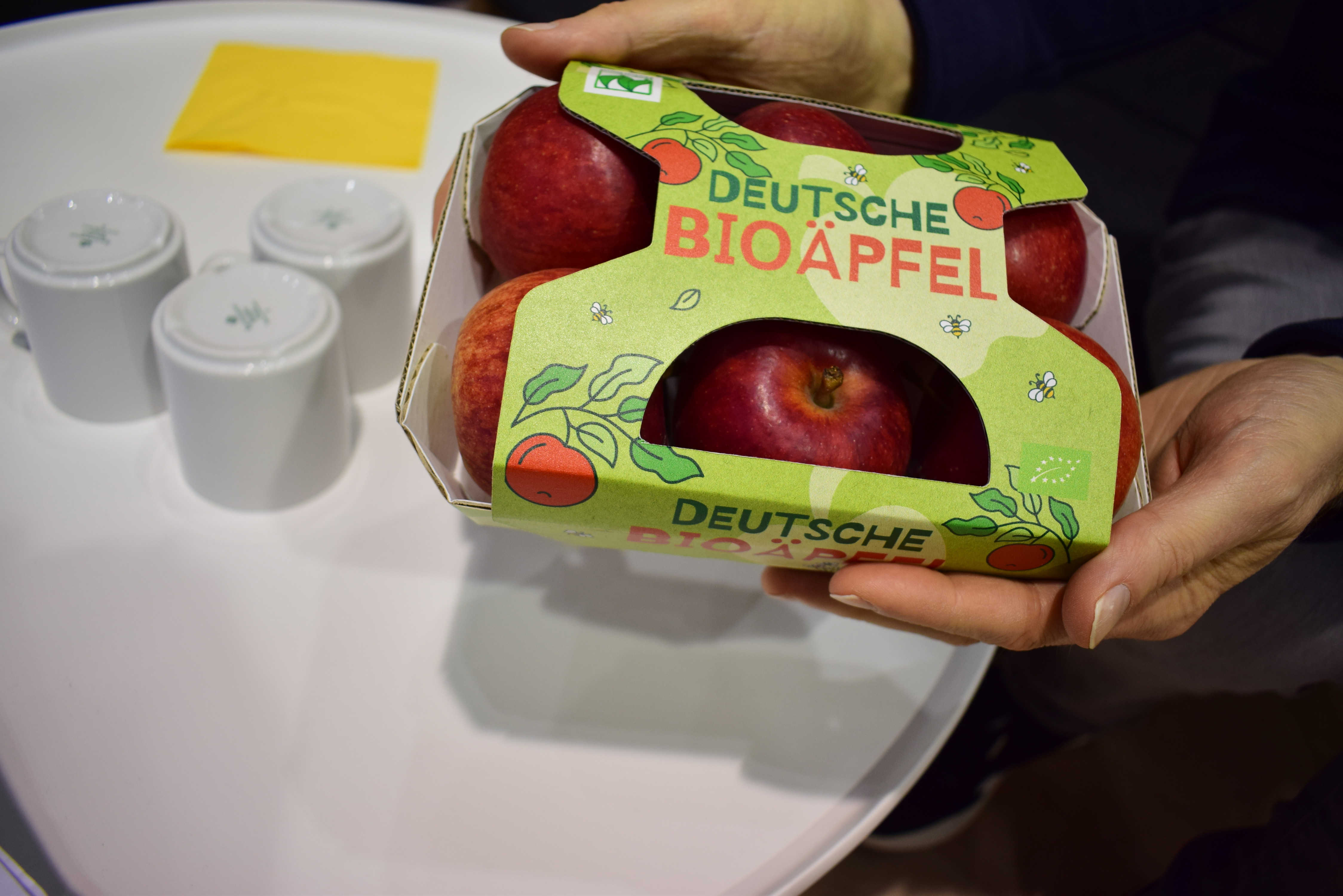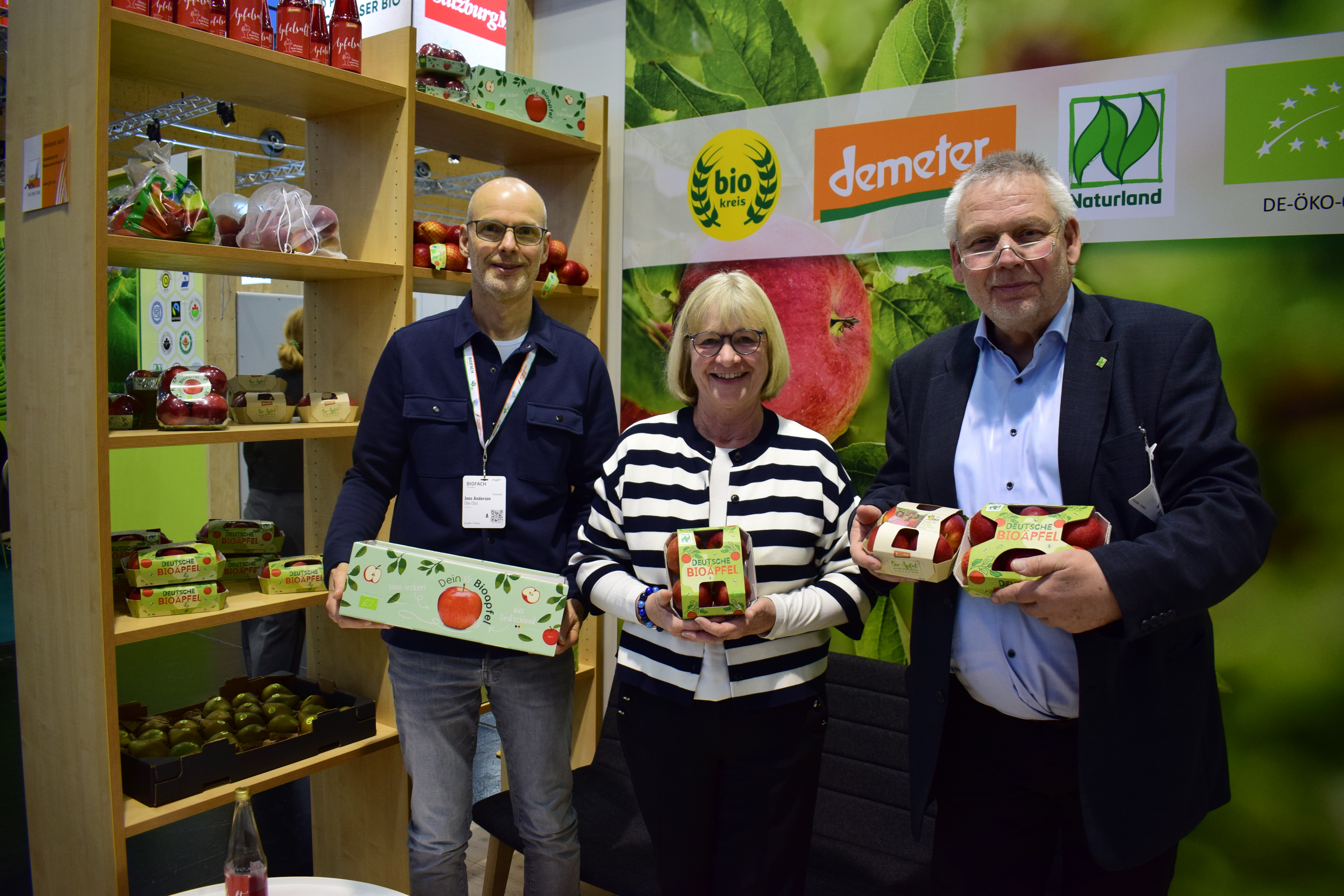 Jens Anderson, Marlies Meggers en Heinrich Zum Felde van Elbe Obst met diverse verpakkingsvormen voor bio-appels