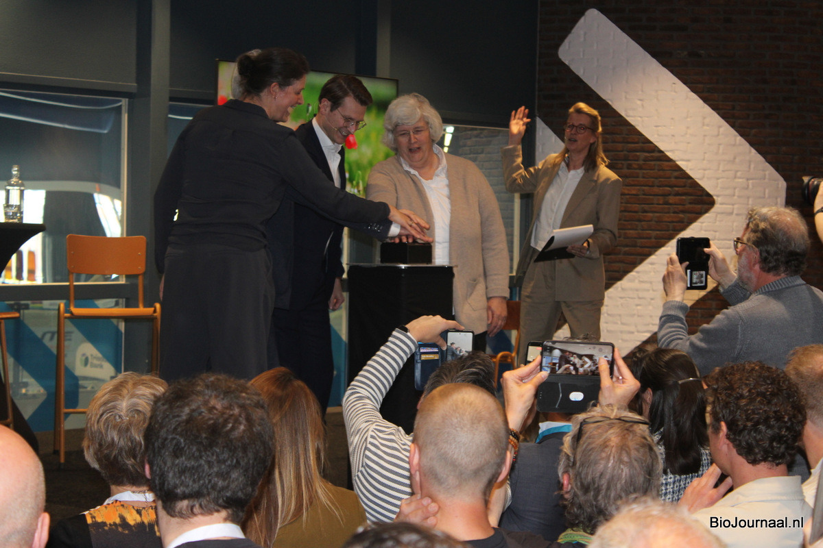 Minister Van Essen en het bestuur van Bionext geven gezamenlijk het startschot voor de Biobeurs 2026.