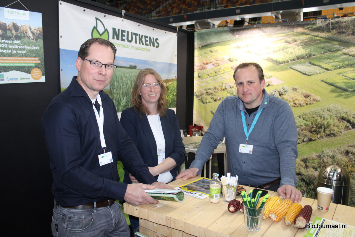 Jan en Lydia Menkveld van Natuurlijk Biologisch Boeren Beheer Menkveld, samen met Pim Clotscher van Zaadhandel Neutkens.