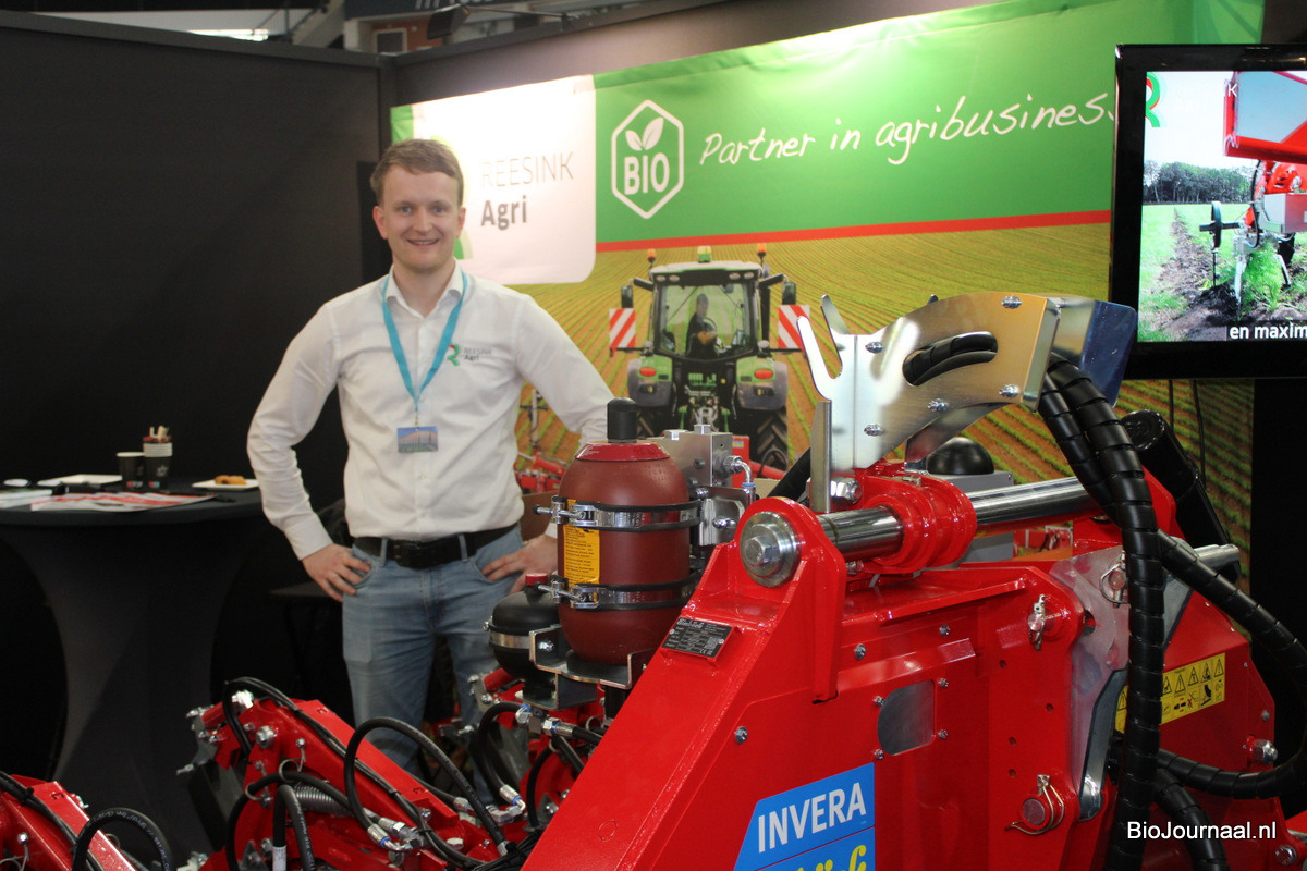 Sander Claassen van Reesink Agri toont de nieuwe inrow-schoffelmachine Invera.
