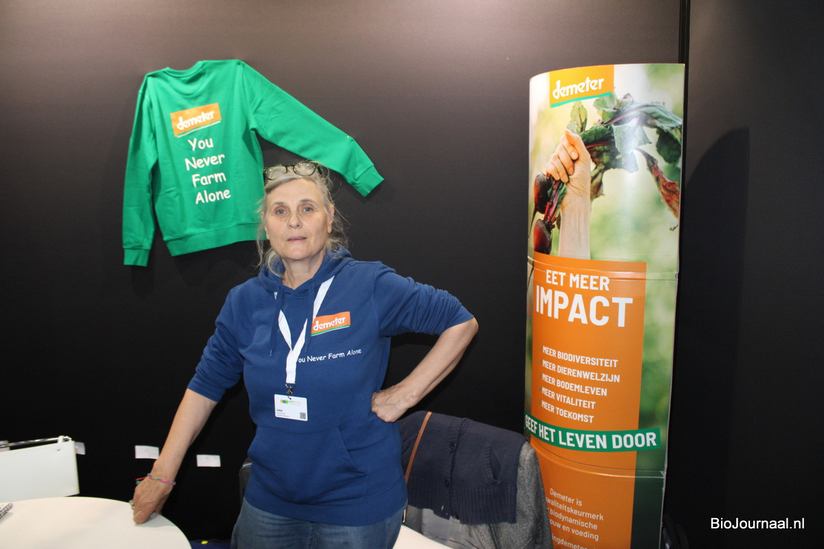 Joke Doorschodt van Stichting Demeter boert nooit alleen, maar staat wel even alleen in de stand.