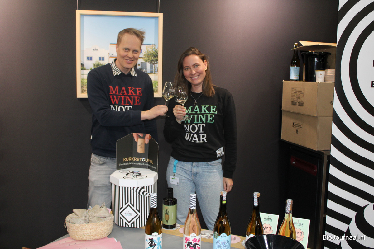 Derrick Neleman en Patricia Kemp van Neleman proosten met hun onlangs door wijngids De Grote Hamersma tot nummer 1 bekroonde biowijn.