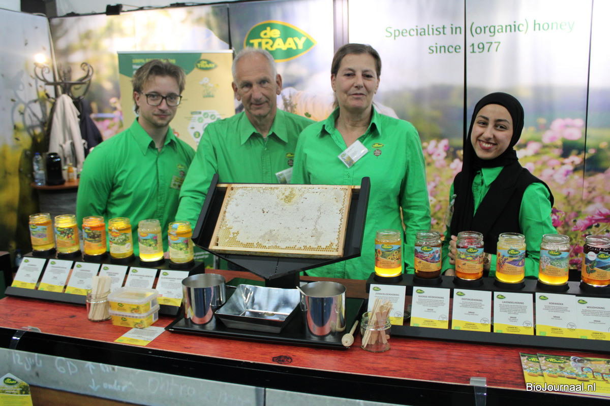 Micayon van Dooremaalen, Eric van Gool, Joyce Weerman en Mariam El Minawi van De Traay laten je proeven van hun brede assortiment biohoning en honingraat.