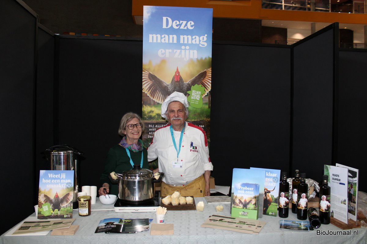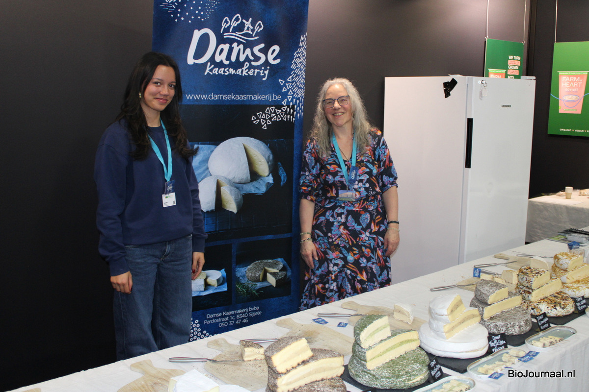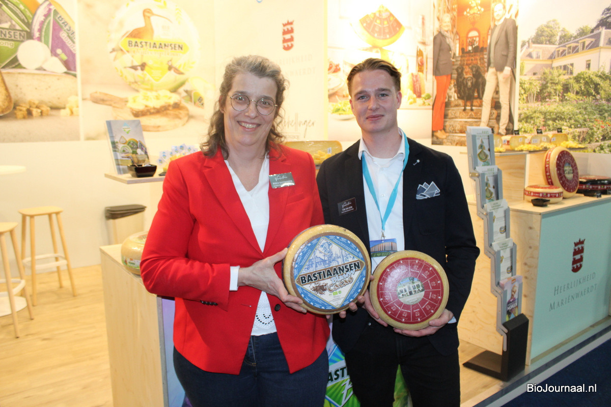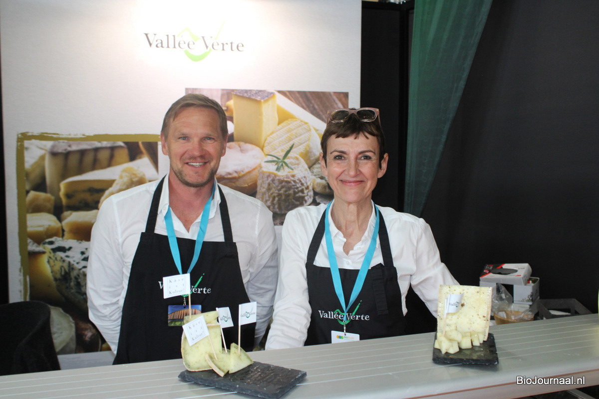 Marja Bastiaansen en Tom van Herk van Vandersterre - Bastiaansen Bio met hun nieuwe blauwaderkaas met coconibs.