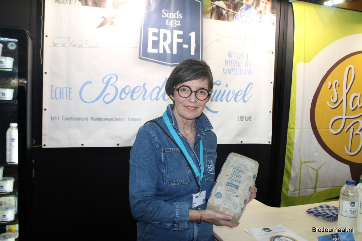 Petra Bruins van Erf-1 toont hun karakteristieke Kamper Terp Kaas.