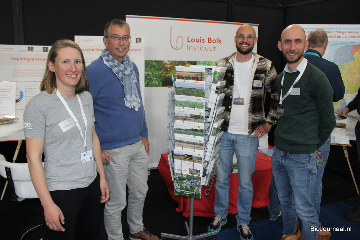 Anne Hoek van Dijke, Chris Koopman, Nick Quist en Pedro Janssen van het Louis Bolk Instituut verspreiden hun landbouwkennis.