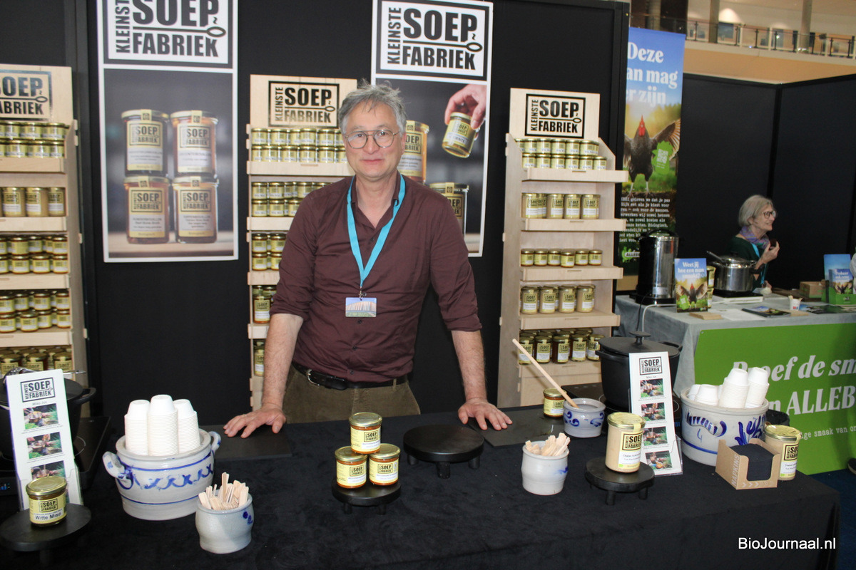 Michel Jansen van de Kleinstesoepfabriek verspreidt een aanlokkelijke soepgeur op de beursvloer.