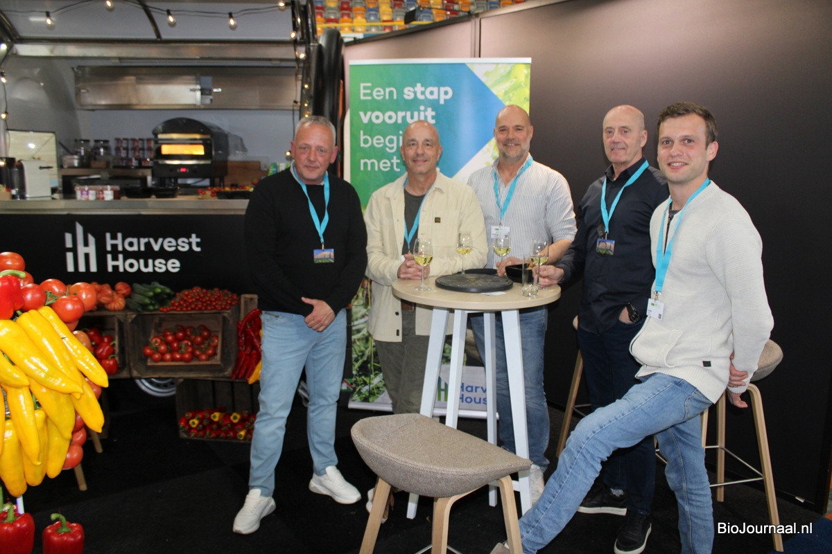 Hidde Zijlstra, Geert Visker van Vitensa, Heiko de Ruiter, Jaap van den Berg van Harvest House en Lowie Verbeek van Bioverbeek zijn al begonnen met de borrel.