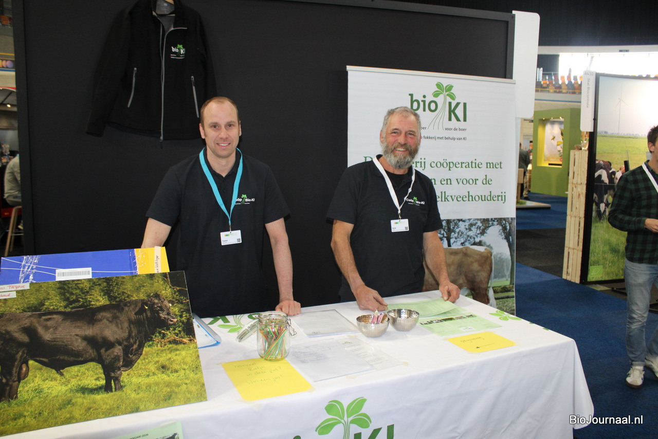 Tjarko Groendijk en René Keulen van Coöperatie Biologische Rundveefokkerij, ofwel Bio KI, brengen een breed assortiment aan koeienrassen aan de man.