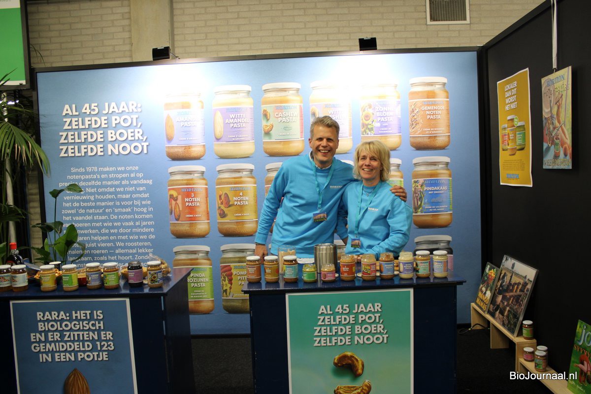 Robert van den Breemer en Kirstin Veldkamp van Horizon Natuurvoeding met hun authentieke notenpasta's en stropen.
