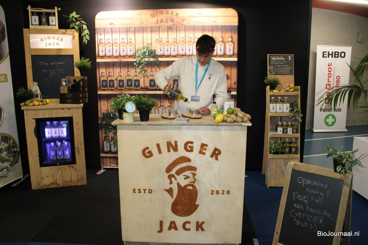 Jim van Ginger Jack. Een lokale gembershot uit België waar ze de keten zelf in handen hebben, van het persen en bottelen tot het verkopen.