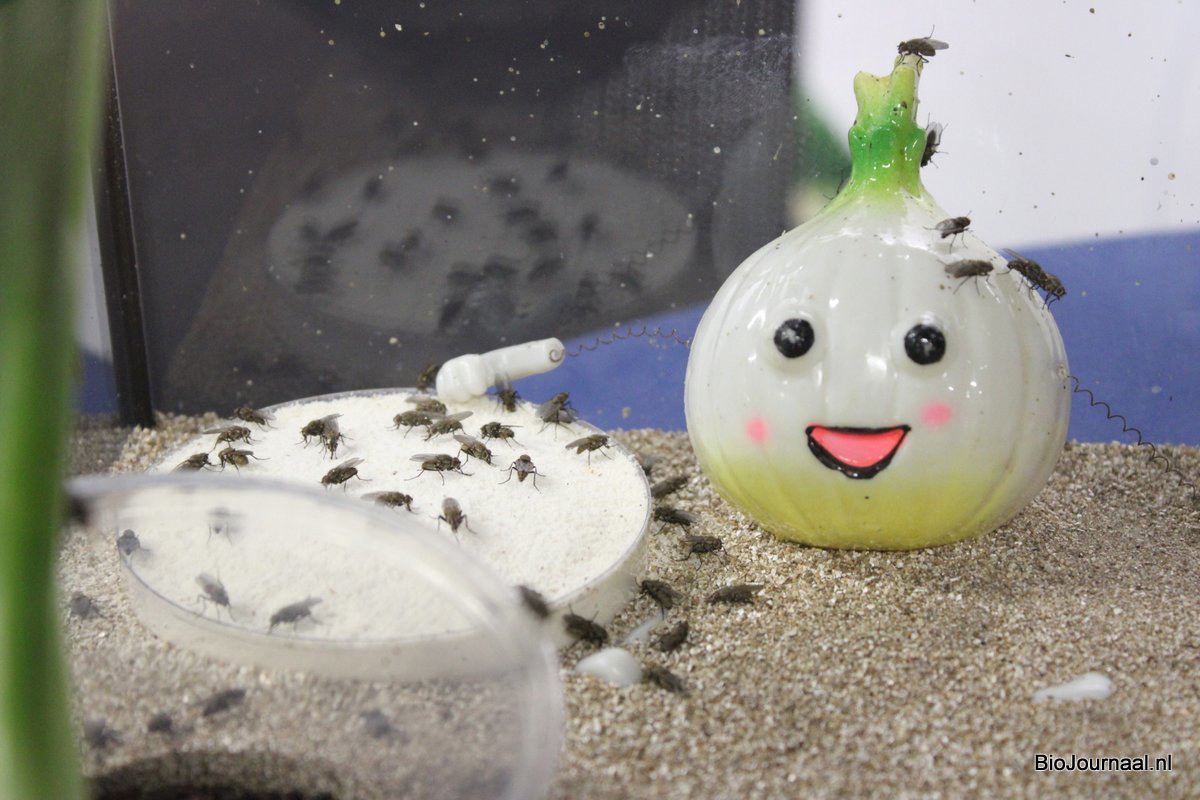 Sanne Graafstra en Thomas Uenk van De Groene Vlieg. Hun specialisatie is plaagbeheersing binnen de uienwereld.