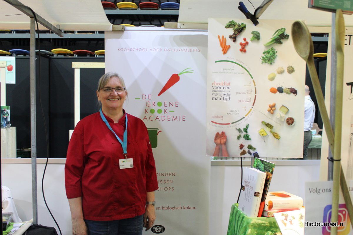 Marion Pluimes van De Groene Kookacademie. Ze geven biologische kookcursussen en opleidingen aan consumenten en professionals in hun studio in Breda.
