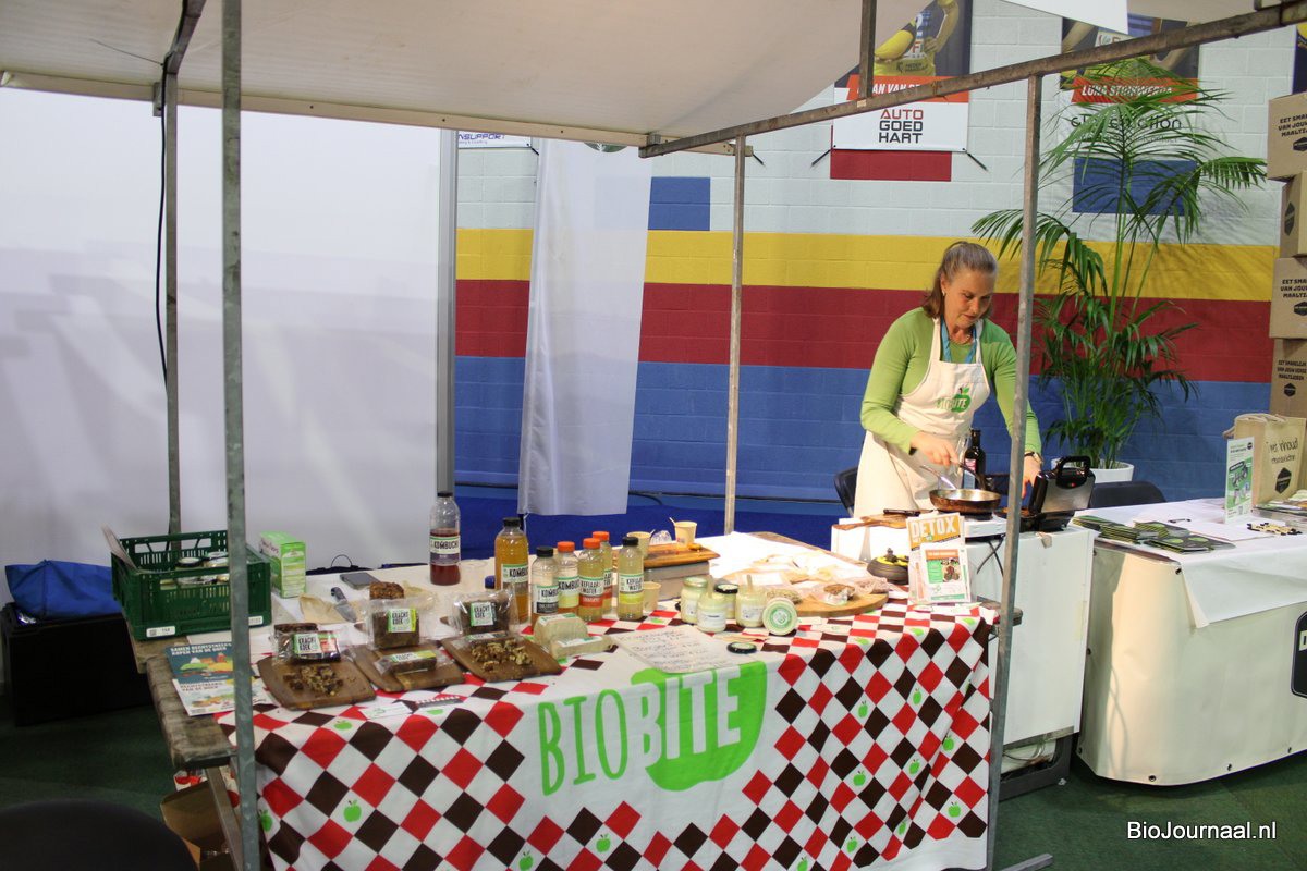 Susanne de Raaij van biobite met hun lokale en veganistische producten.