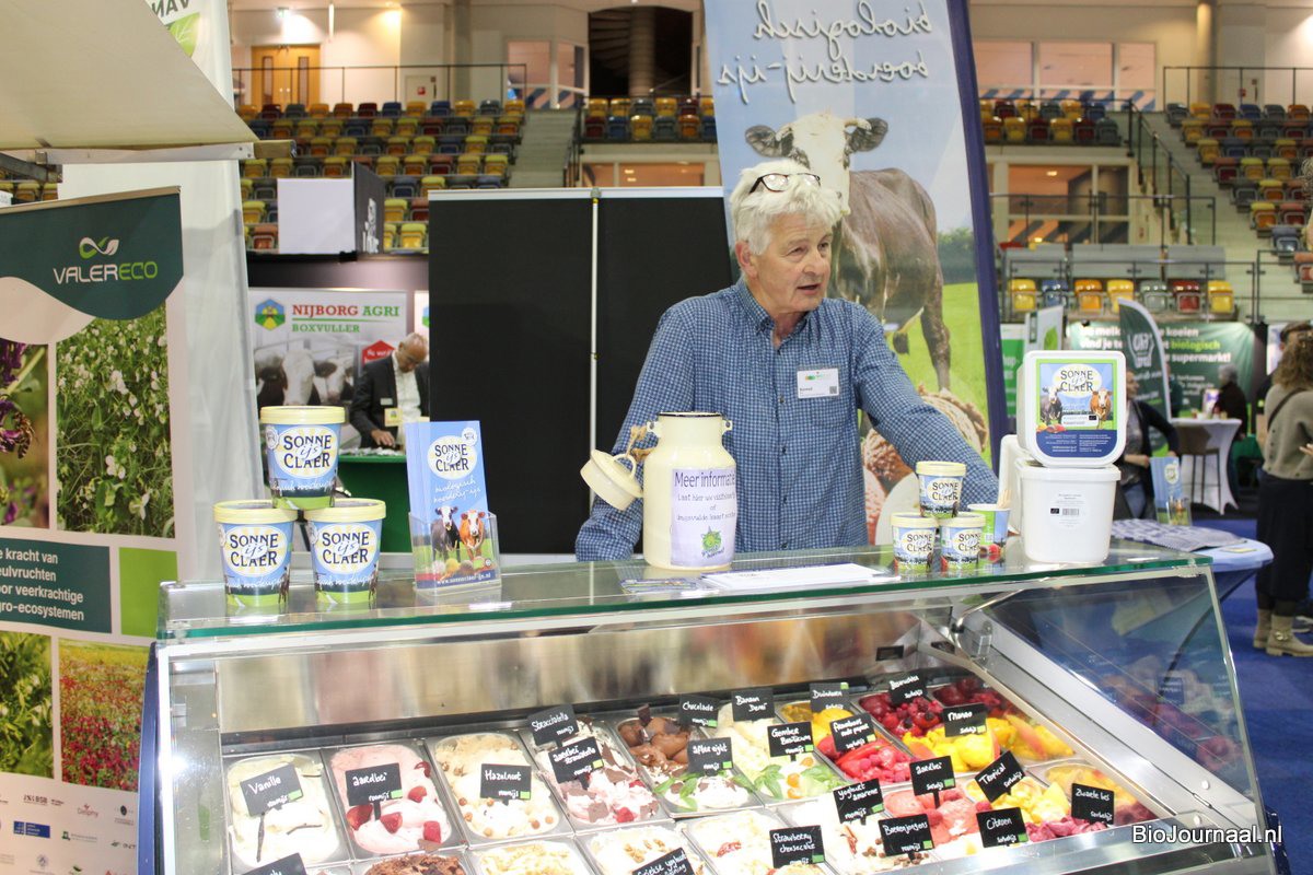 Barend Mul van Sonneclaer met zijn grote selectie van biologisch boerderij-ijs.