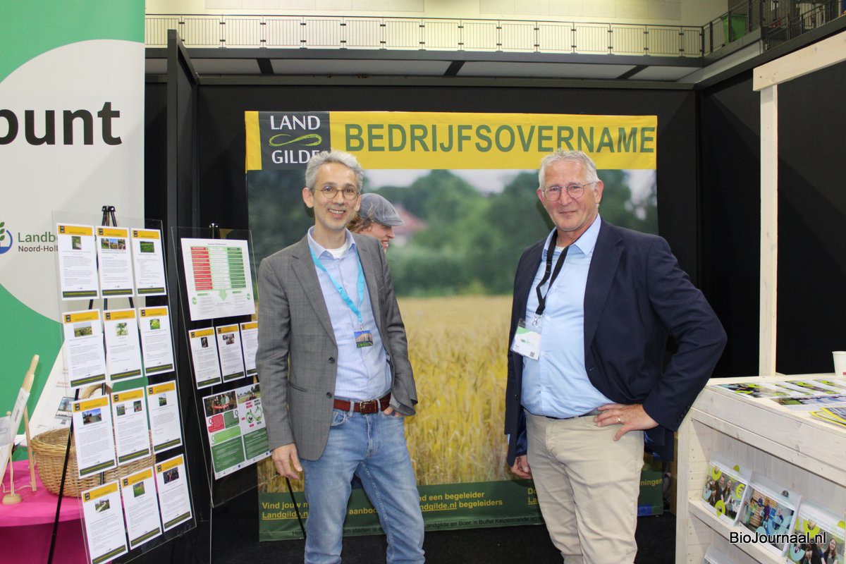 Thomas Schara van Landgilde en zijn oud-collega Paul die nu werkzaam is bij de Triodos Bank. Landgilde is een matchmaking service voor vraag en aanbod binnen de landbouw.