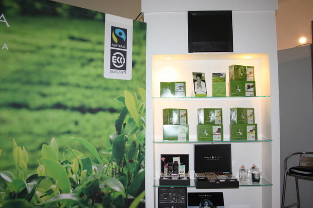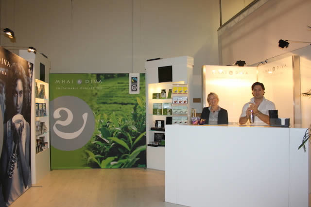 Henriëtte Boer in de stand van Mhai Diva - Lady of Tea, met een range aan bio-thee.