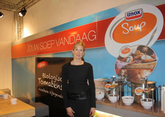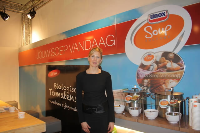 Ingrid Sloots van Unilever toonde de nieuwe biologische tomatensoep voor de Out-of-Home markt.