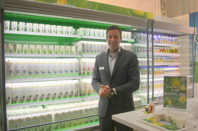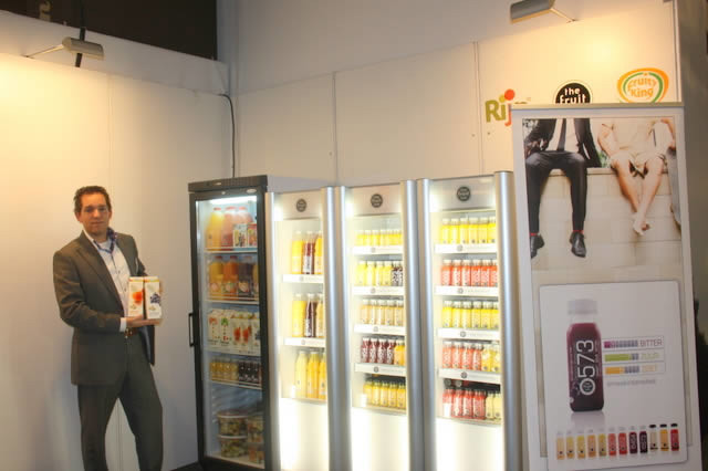 Roy Stoffer van Fruity King laat bio-sappen zien van RIJP.