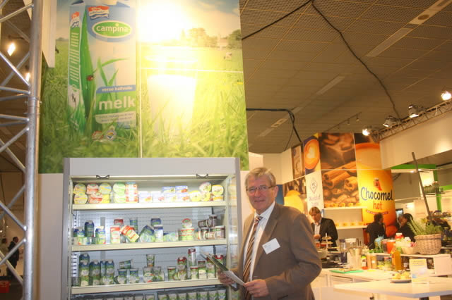 Jaap Zwikker, nieuw bij Campina, vertelde geïnteresseerden over Campina Boerenland.