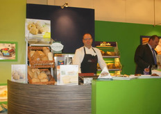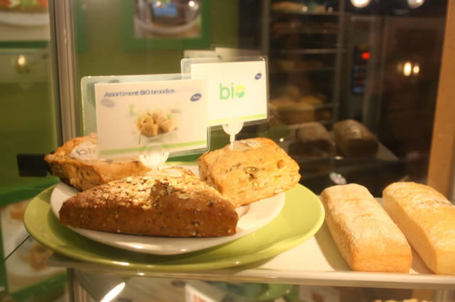 Ronald Groffen van Molco (CSM Benelux) liet de zeven soorten bio-broodjes zien. Deze broodjes vullen het assortiment sinds 1 januari aan.