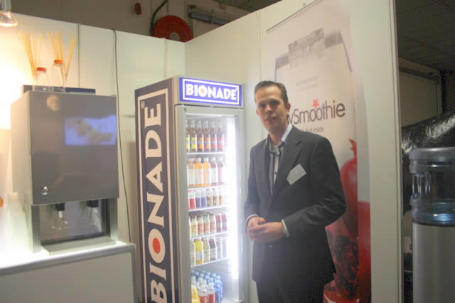 Björn Bosch bij de koeling met Bionade. In de andere koeling onder meer drankjes van Home Farm Originals